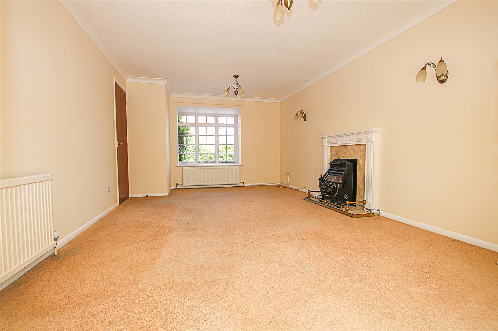 Spacious room with feature fireplace with stone surround and mantel with stone hearth. Sliding doors to conservatory. Attractive bay window. Radiator. Door to entrance hall.