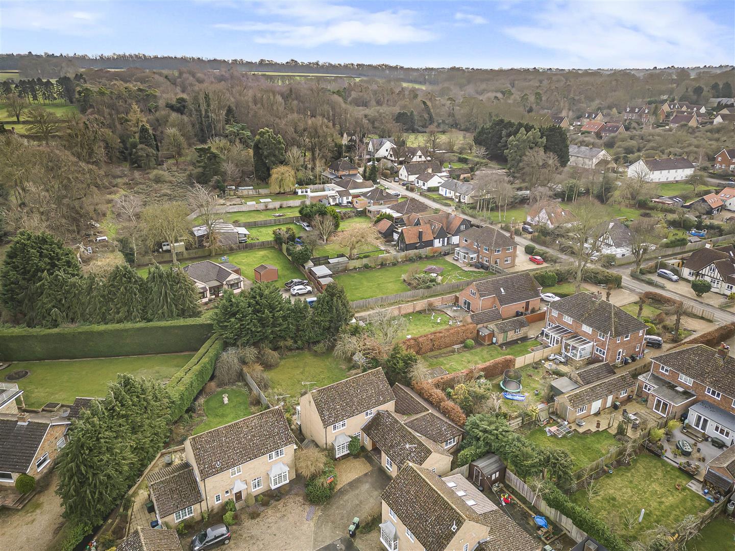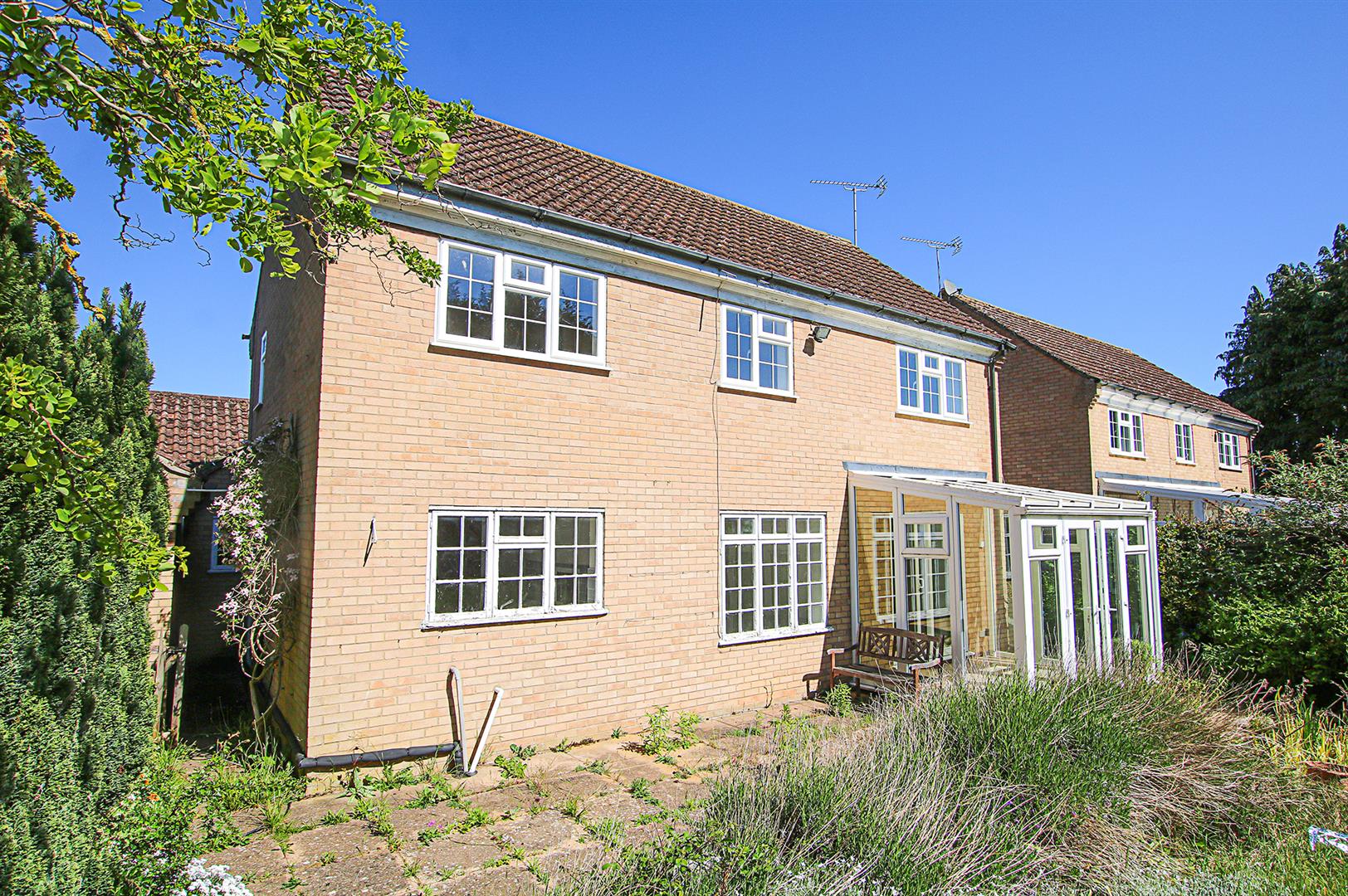Mainly laid to lawn with mature shrub borders. Patio area to rear and side of house with ornamental pond. Glazed door leading to annexe living room.