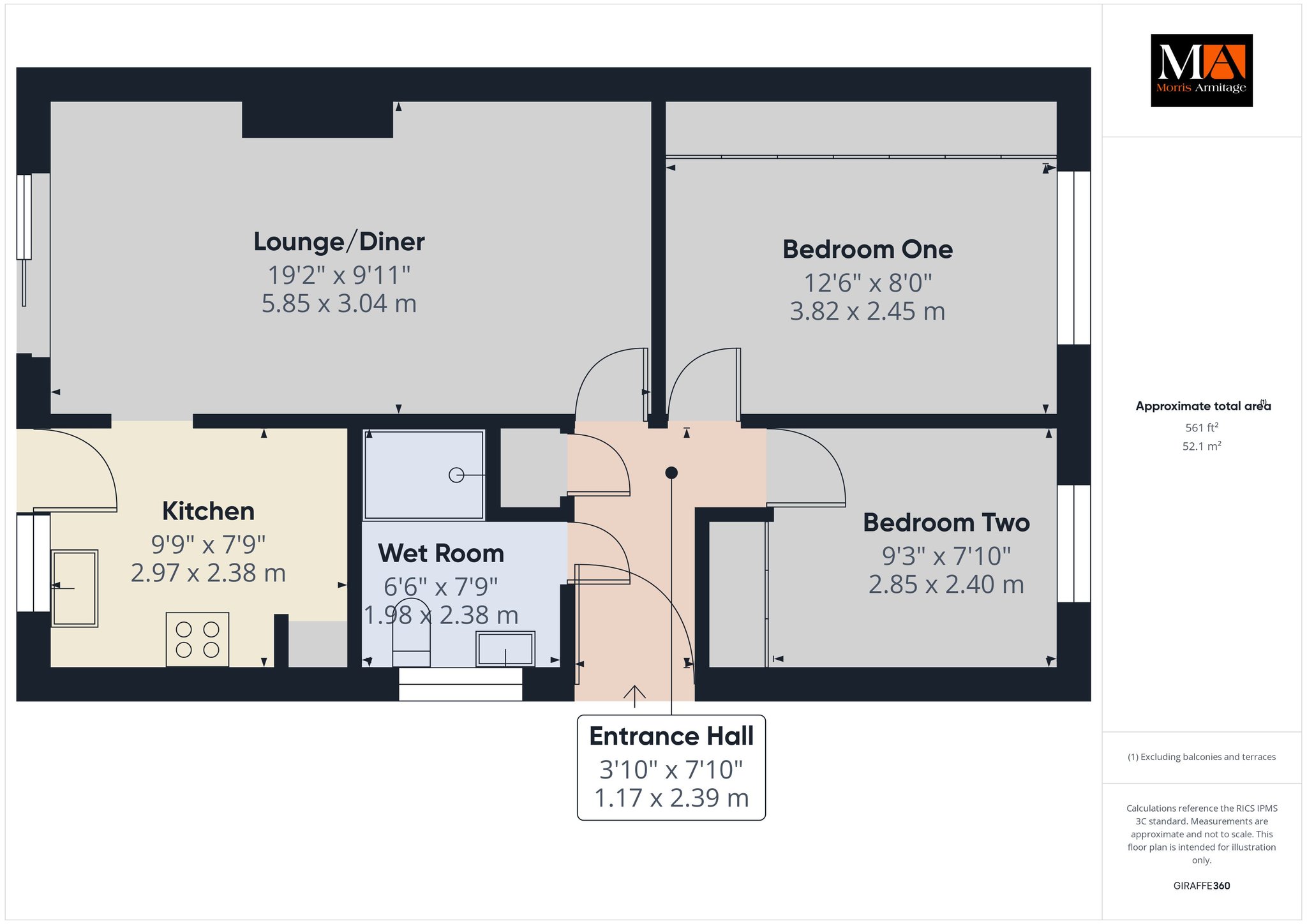 Bedroom One 12’6” x 8’0” (3.82m x 2.45m)