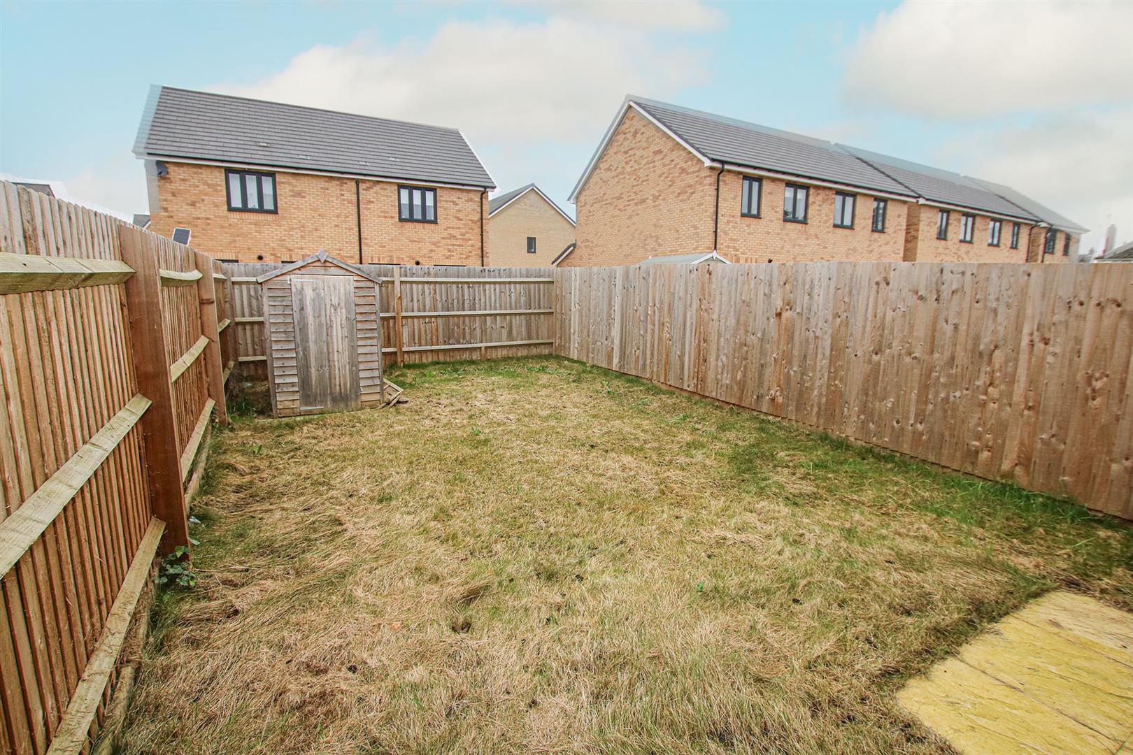 Enclosed rear garden with patio area outside living/dining room. Laid to lawn. Side access gate leading to front.