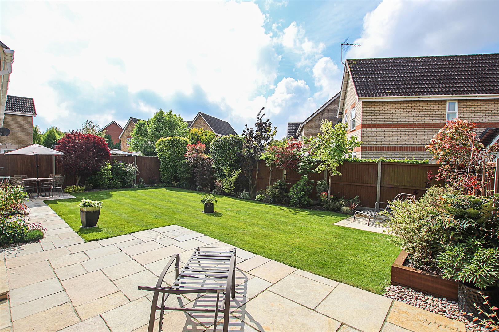 Fully enclosed, mature garden predominantly laid to lawn bordered by a plethora of plants/shrubs and paved seating area.