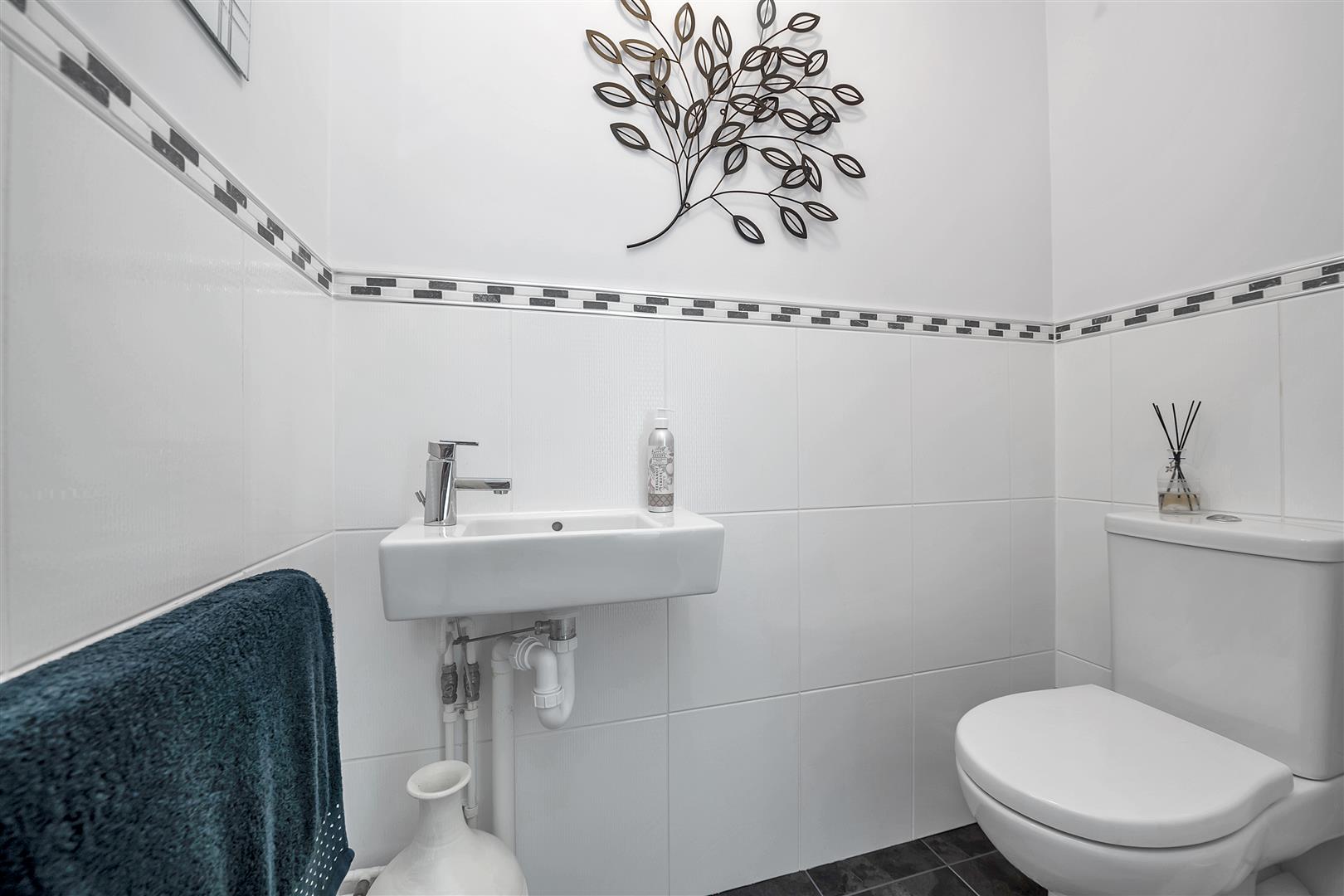 With low level WC, wash hand basin and part tiled walls, tiled flooring, extractor.