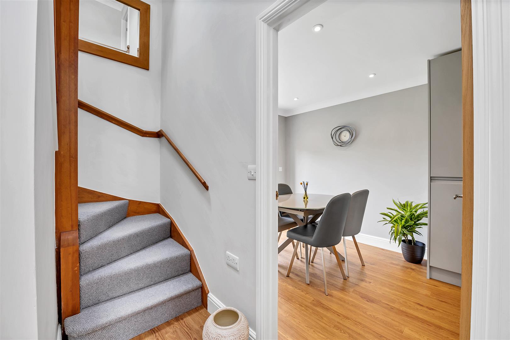 With engineered wood flooring, storage cupboard, access to living room, kitchen, cloakroom and staircase rising to the first floor.