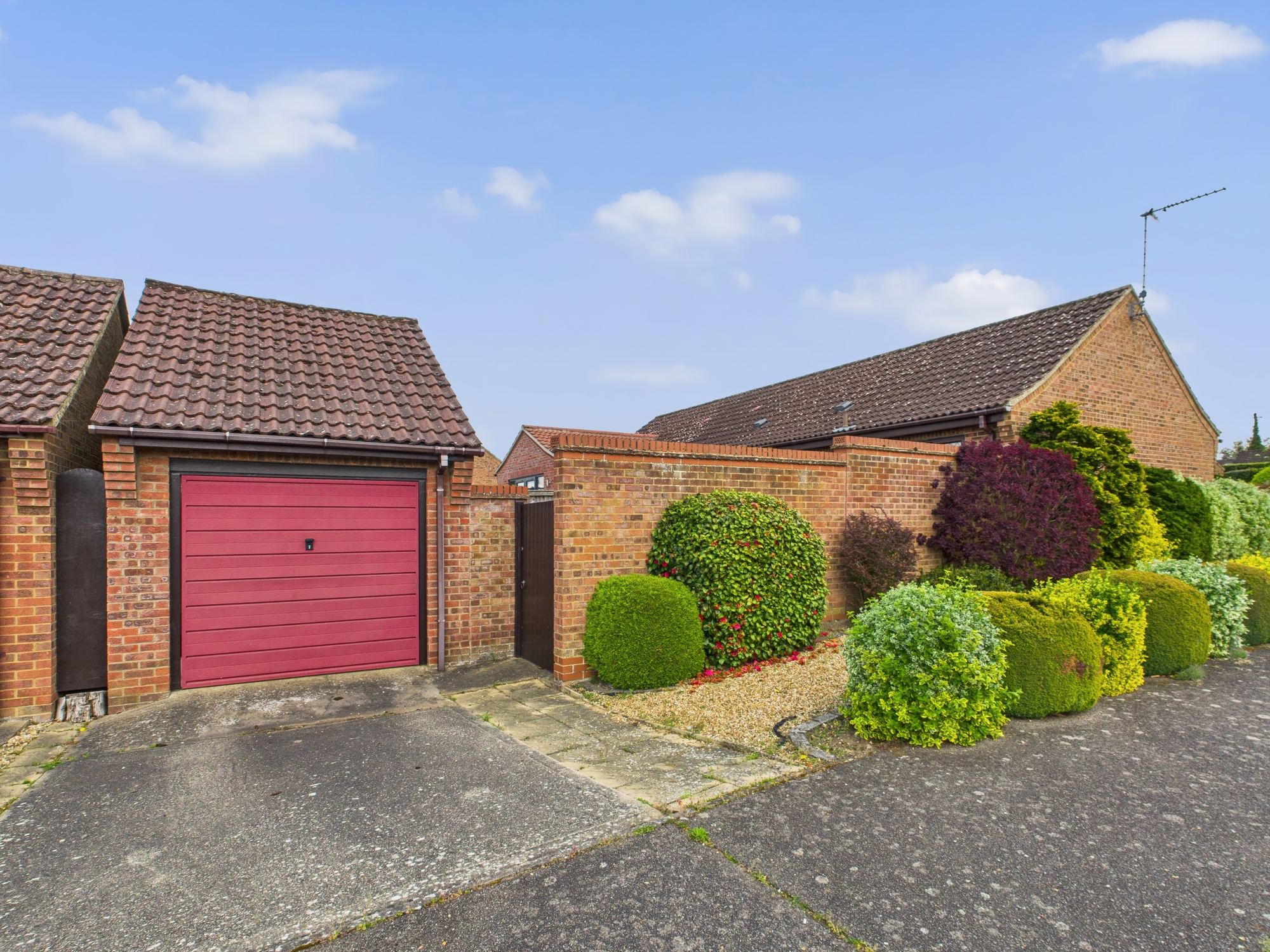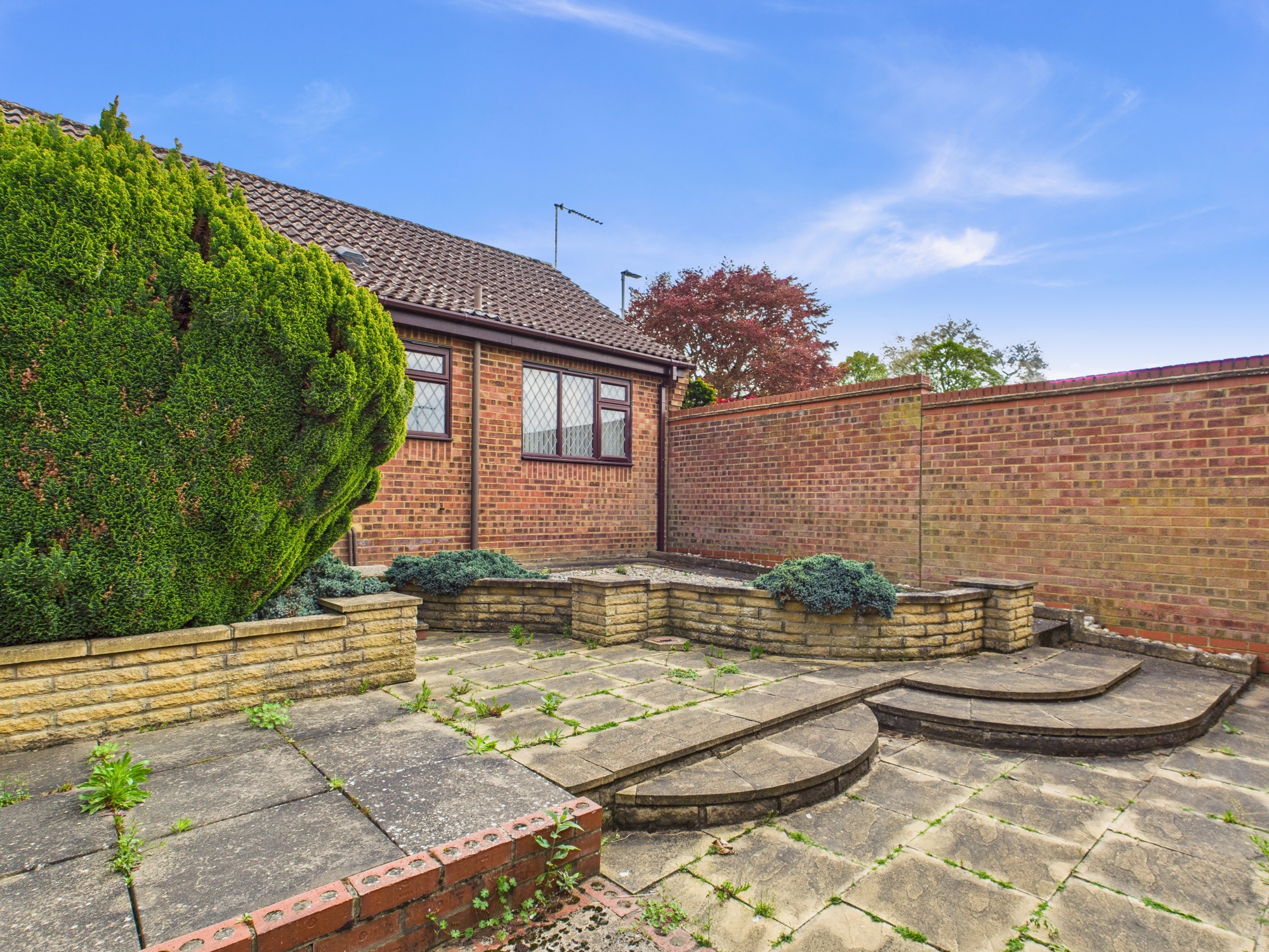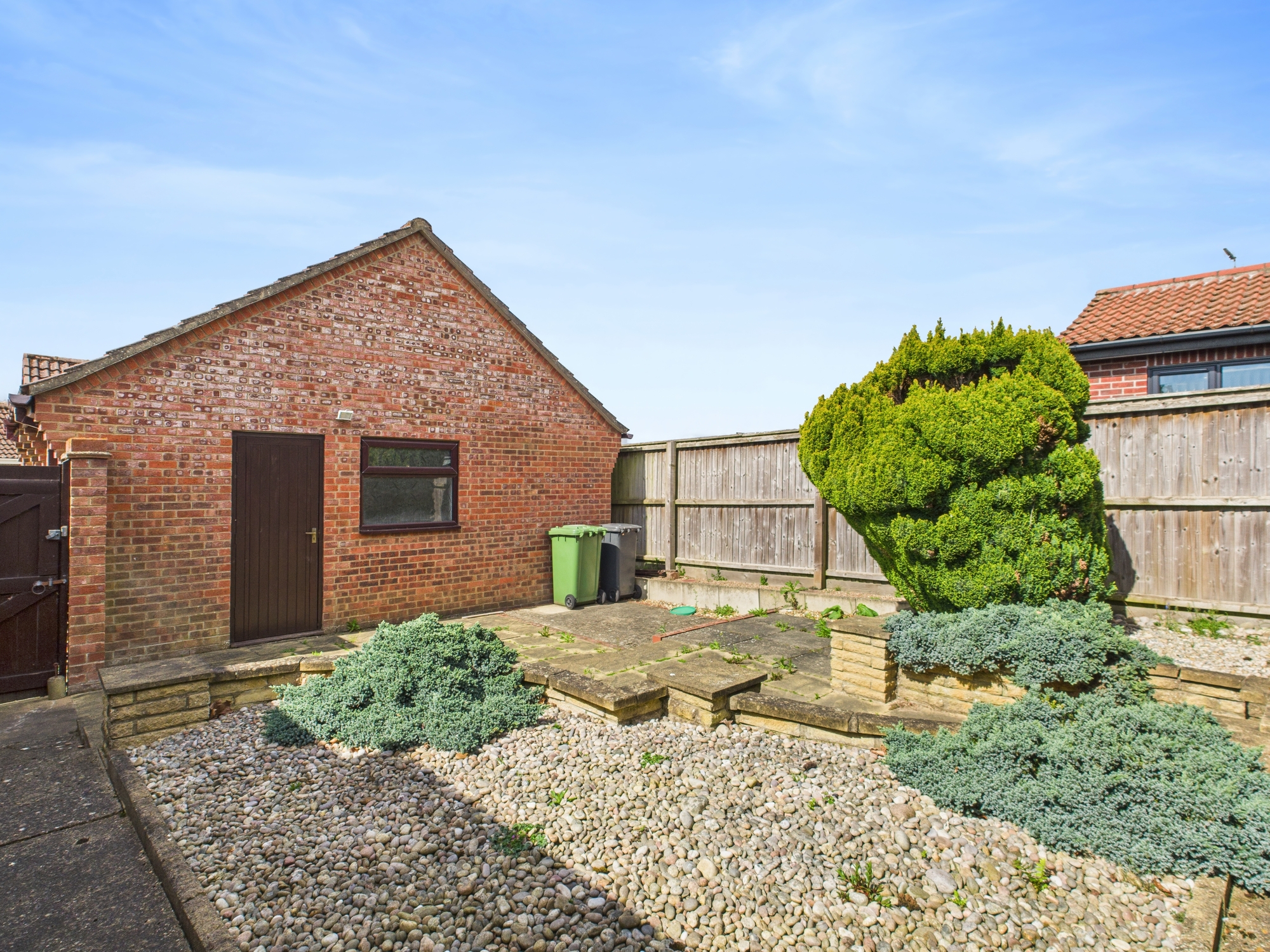 To the front of the property there is a pathway extending to the front door. Both the front and side offer an attractive mixture of low level hedging and shrubbery. The rear garden is fully enclosed, partially by a solid wall and this is laid to patio with stone borders. There is a timber gate giving access to the rear driveway and a side door leading to the garage which has up and over door, power and light.
