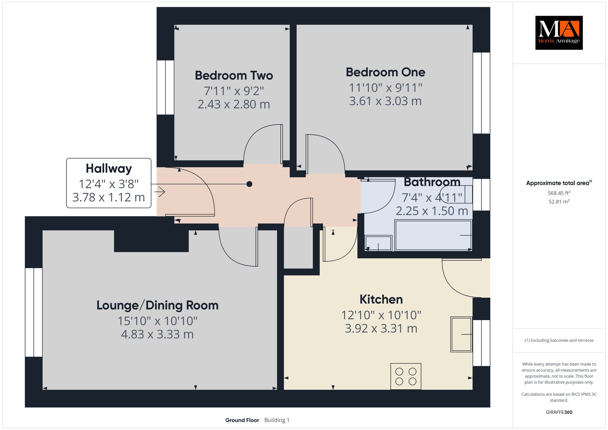 Lounge/Dining Room 15’10” x 10’10” (4.83m x 3.33m)