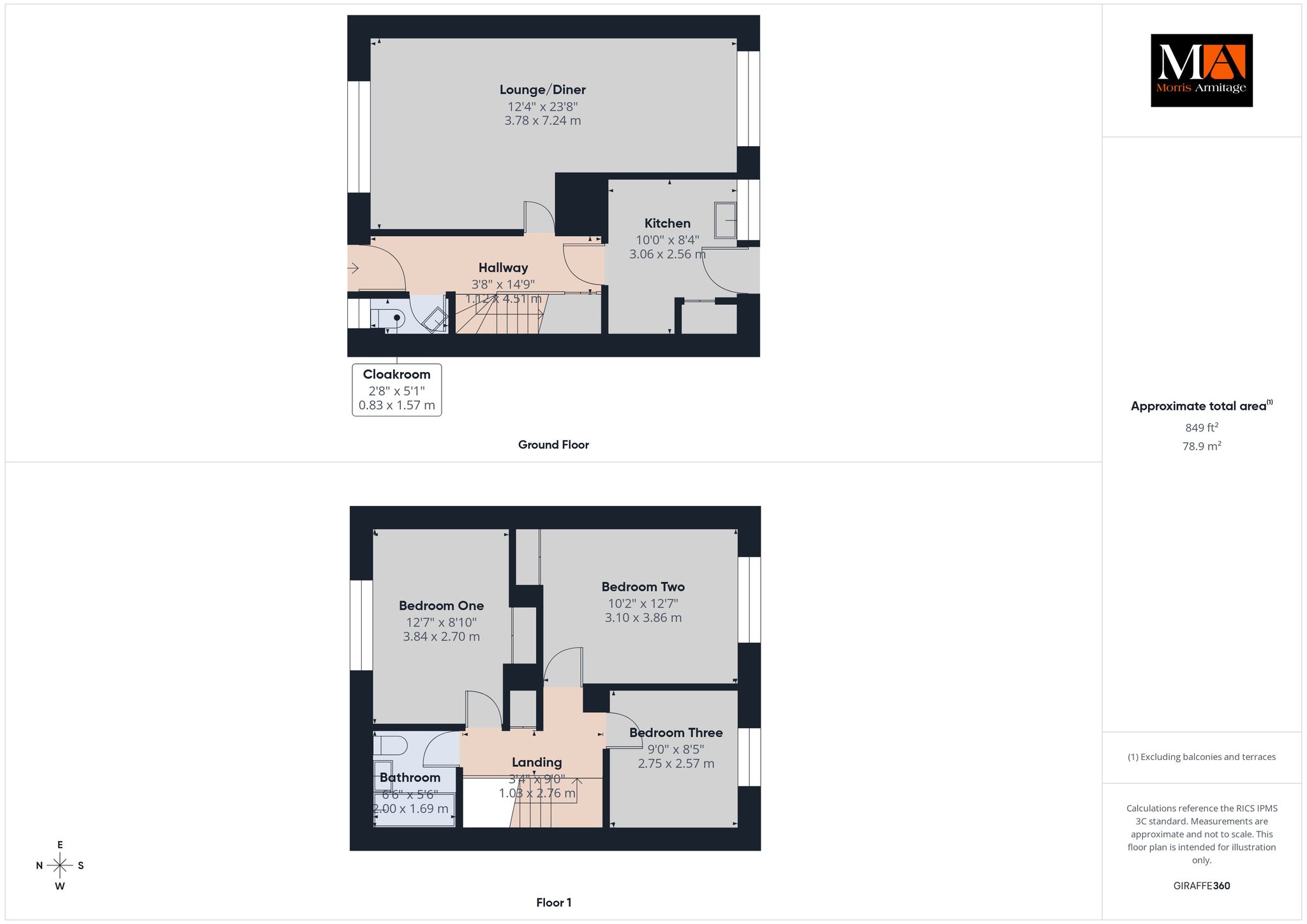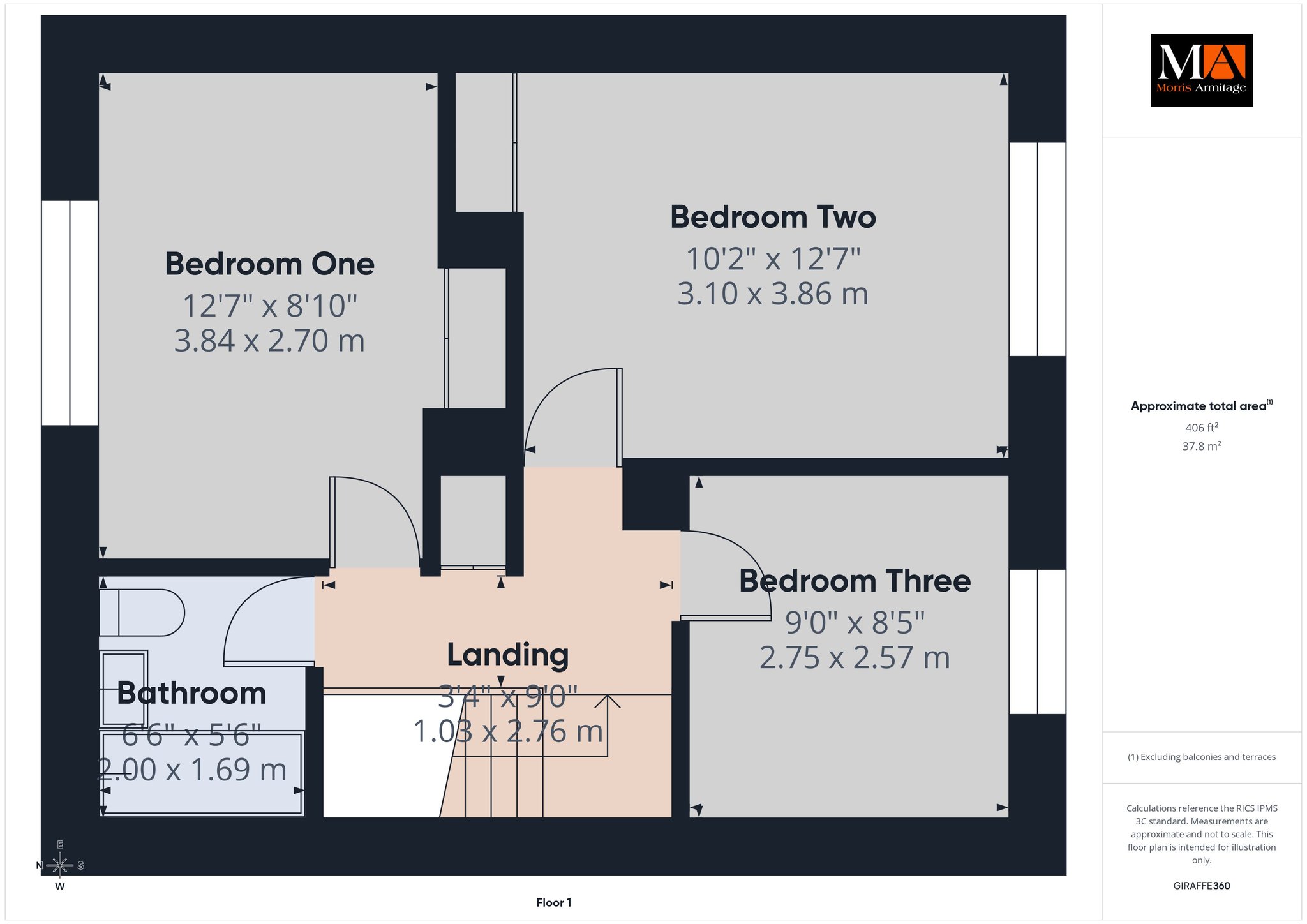 Bedroom One 12’7” x 8’10” (3.84m x 2.70m)