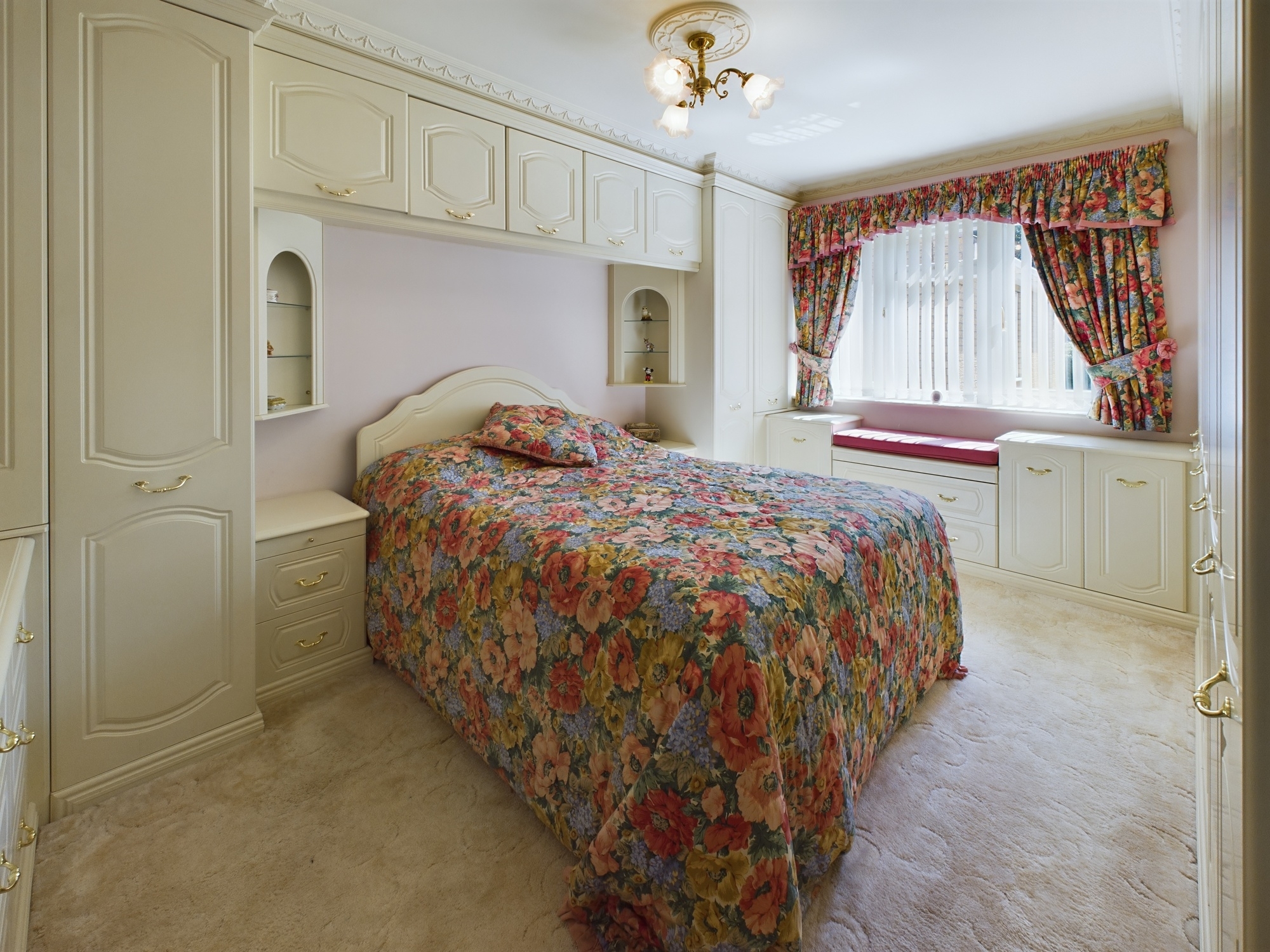 uPVC double glazed window to rear aspect, fitted wardrobes, storage and bedside tables.