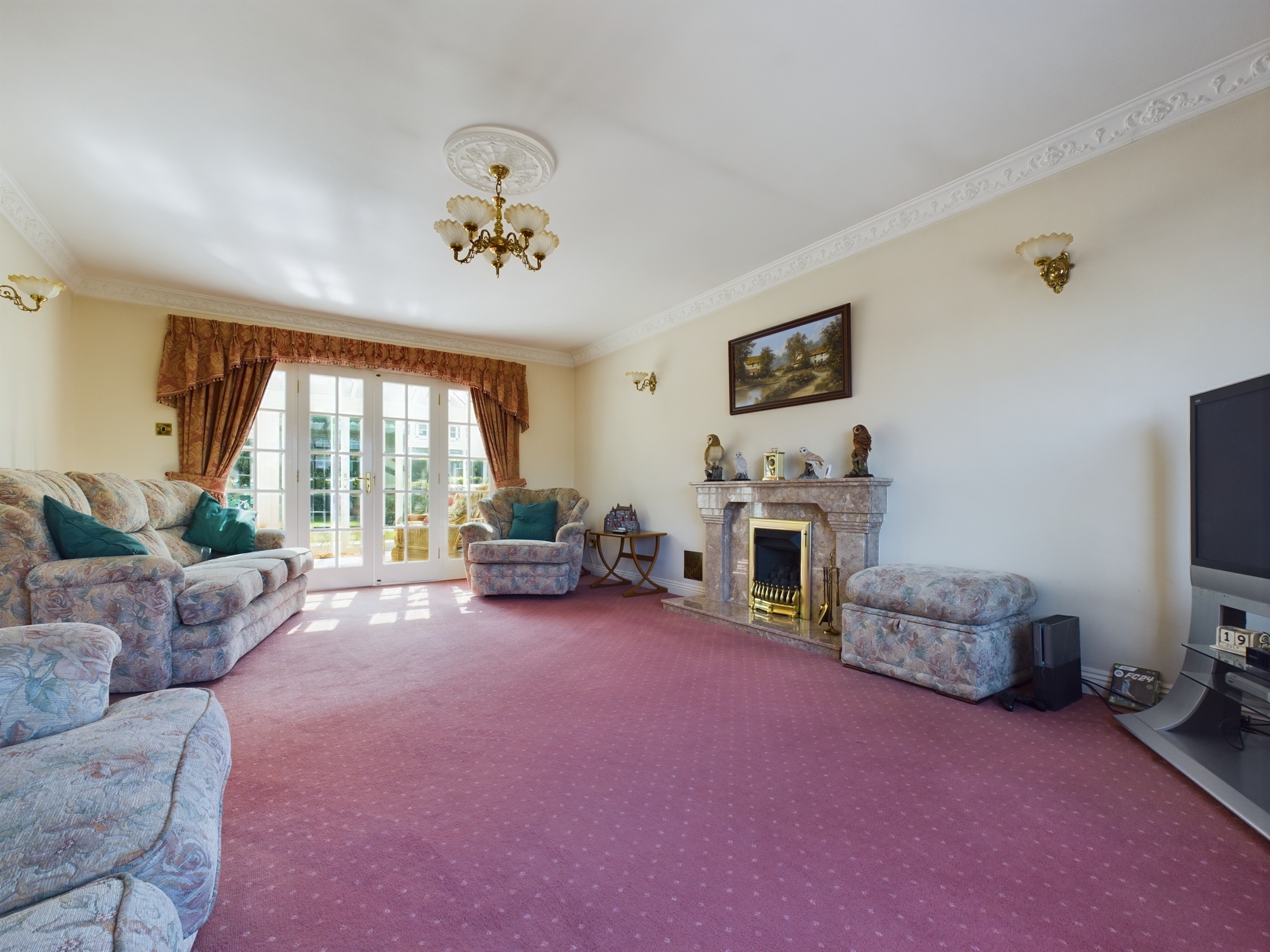 uPVC double glazed window to front aspect, gas fire set in marble surround and hearth, 2 radiators, French doors to conservatory.
