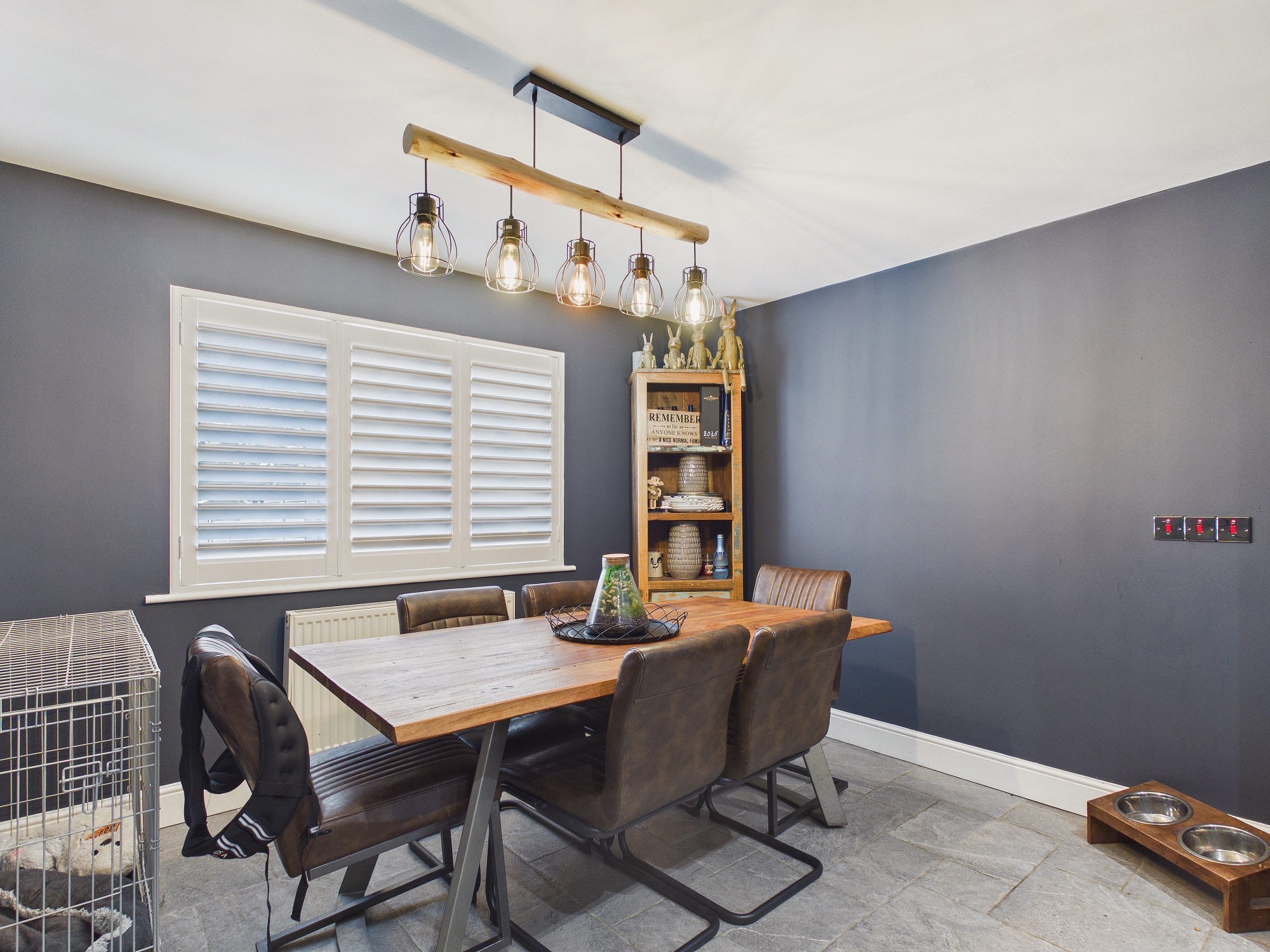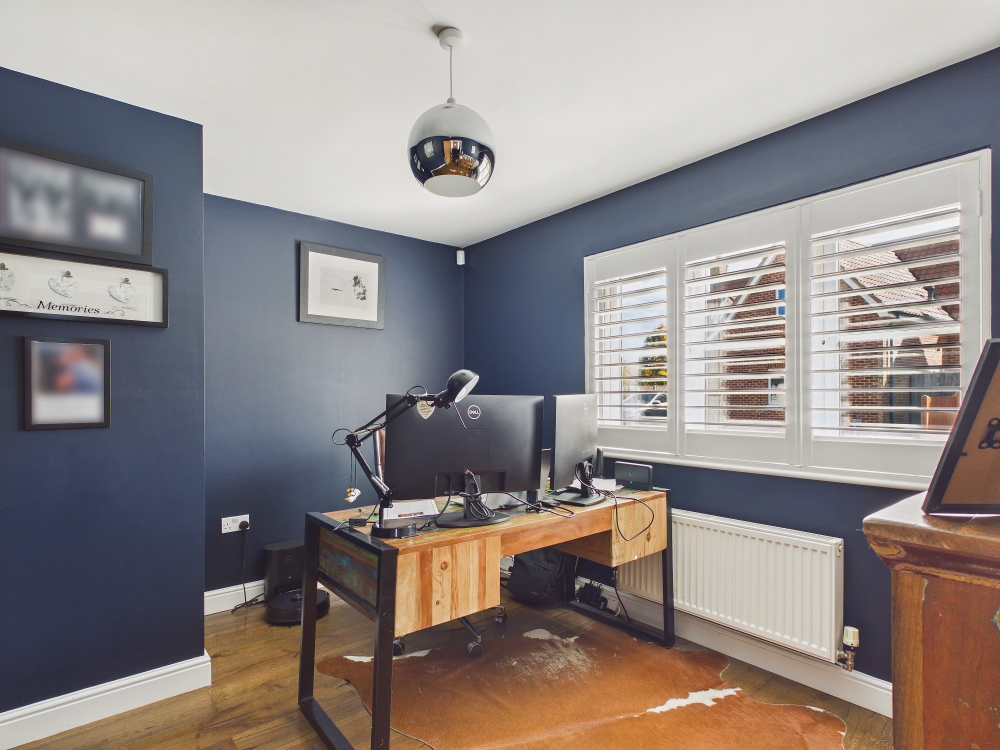 uPVC double glazed window to front with window shutters, wall mounted double panel radiator, engineered oak flooring.