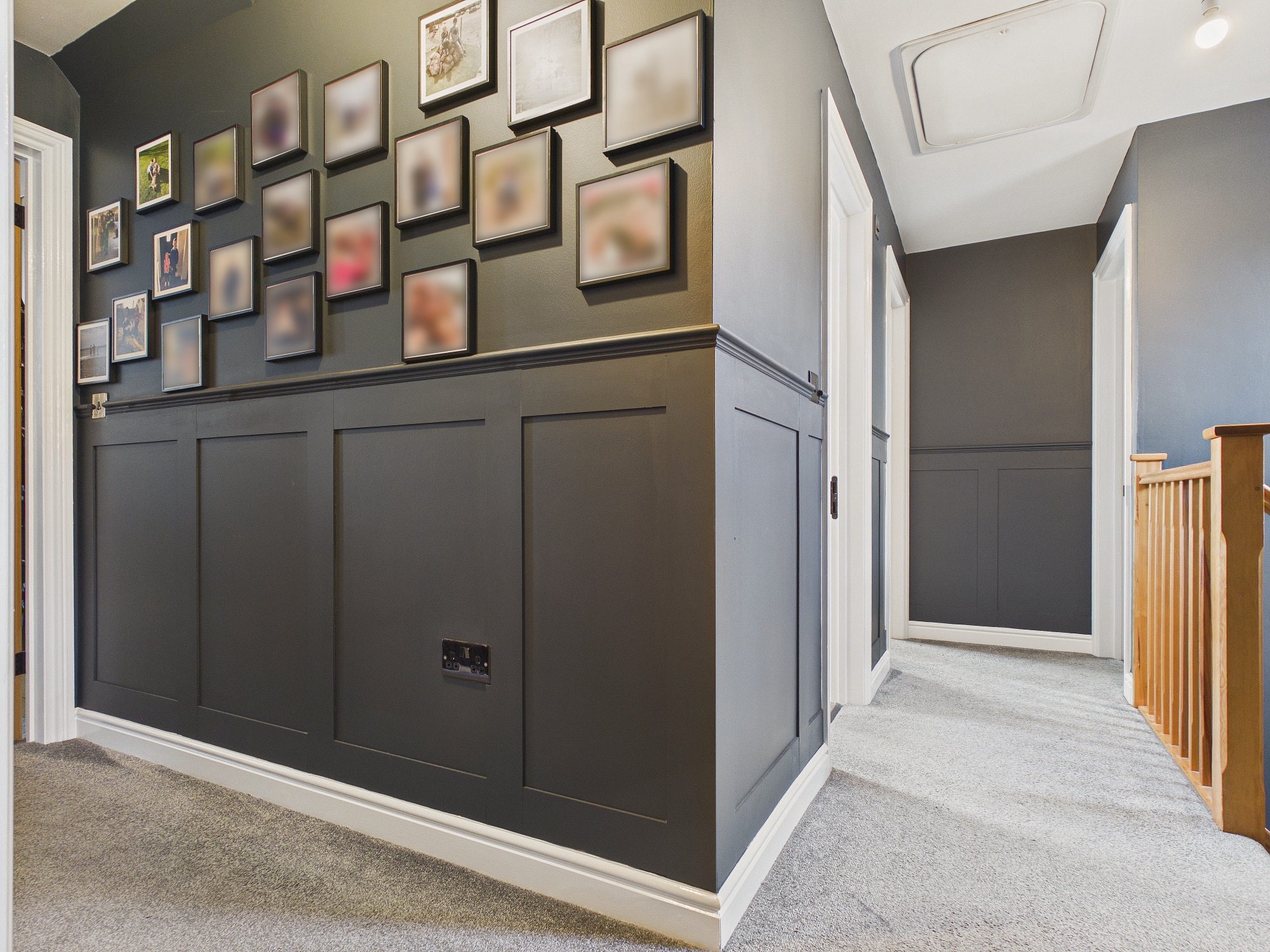 Velux window to rear, wall mounted single panel radiator, wall panelling, loft access, door to airing cupboard with wall mounted radiator and shelving, doors to all rooms.
