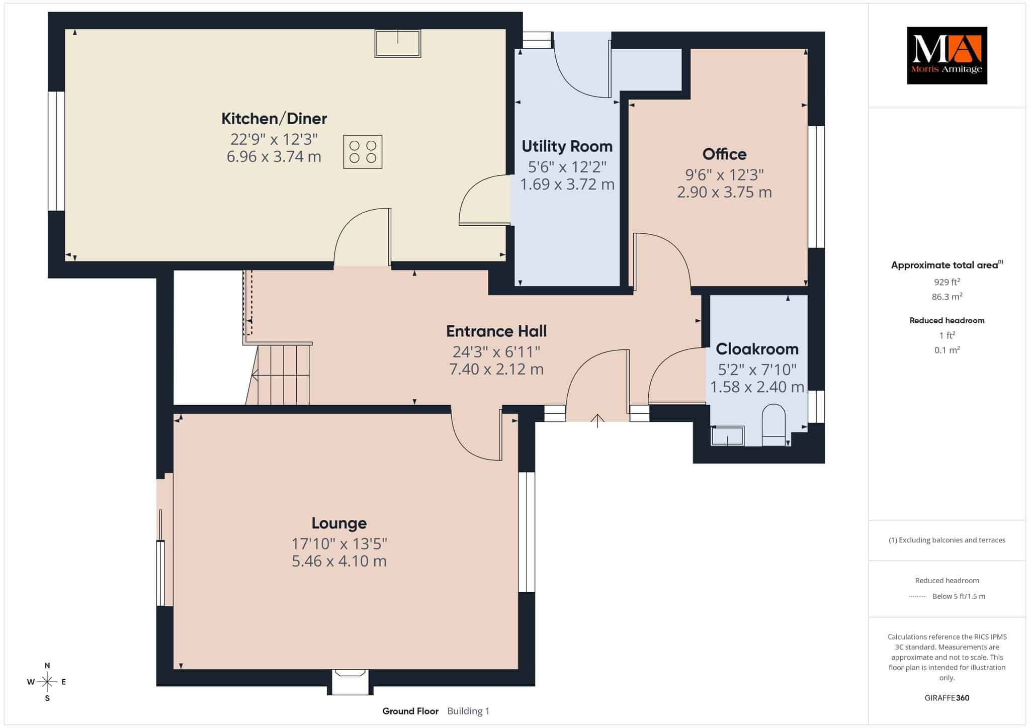 Lounge 17’10” x 13’5” (5.46m x 4.10m)