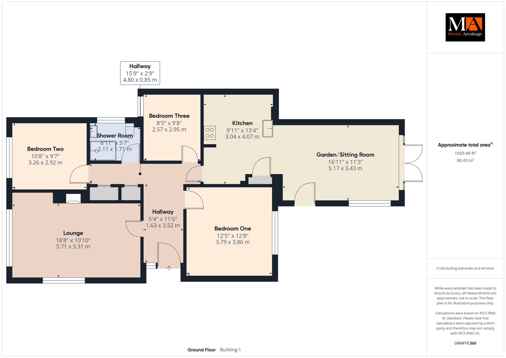Bedroom One 12’8” x 12’5” (3.86m x 3.79m)