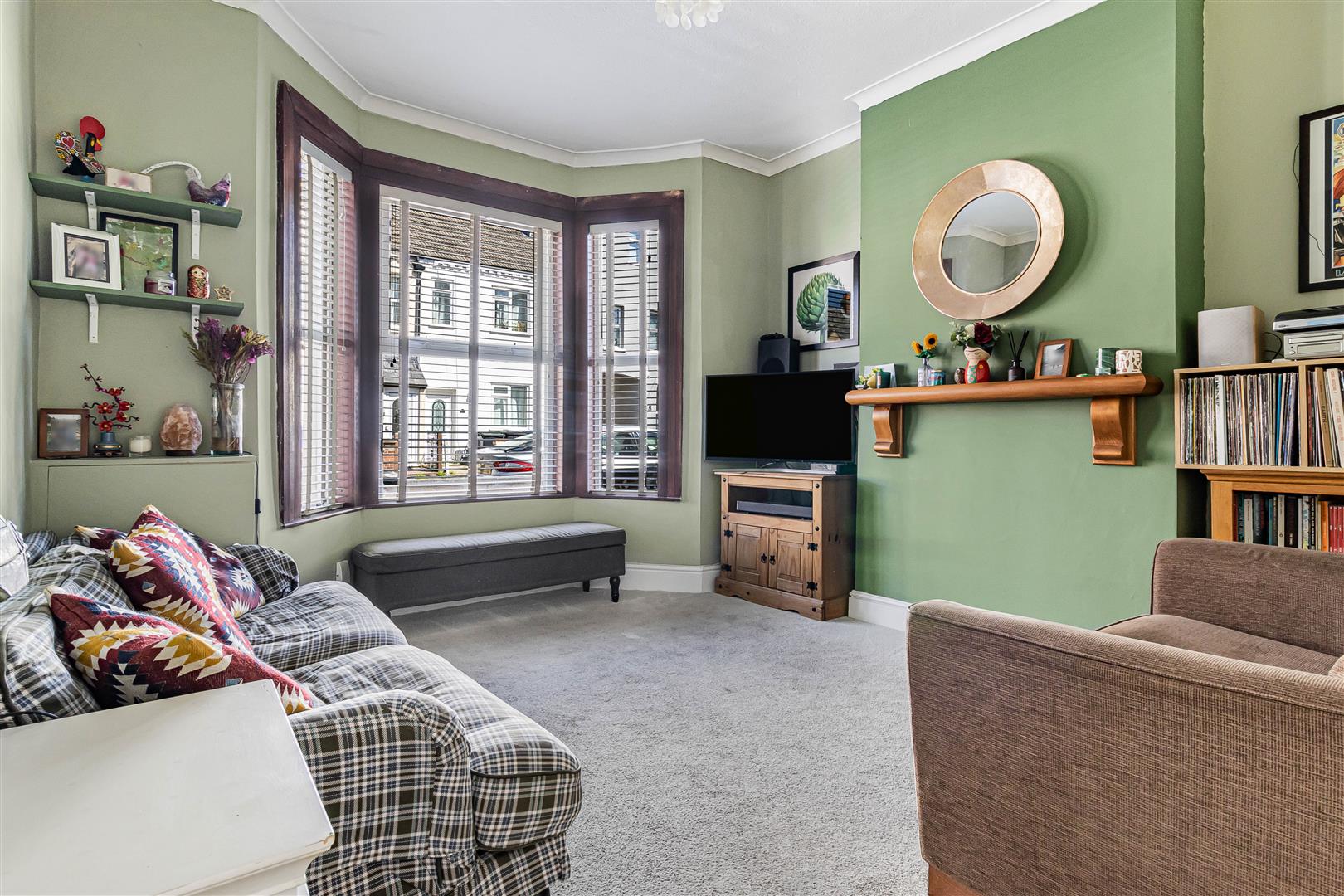 Charming, spacious living room with bay window to the front aspect. Radiator. Door leading to the entrance hall.