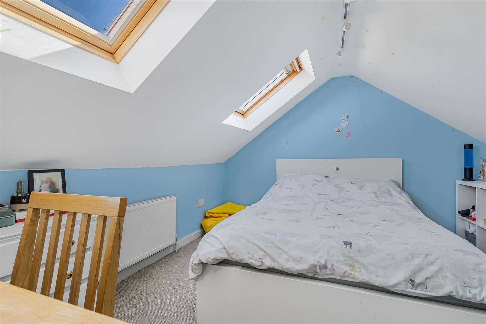 Double bedroom with dual velux windows. Radiator. Doors leading to the en suite and second floor landing.