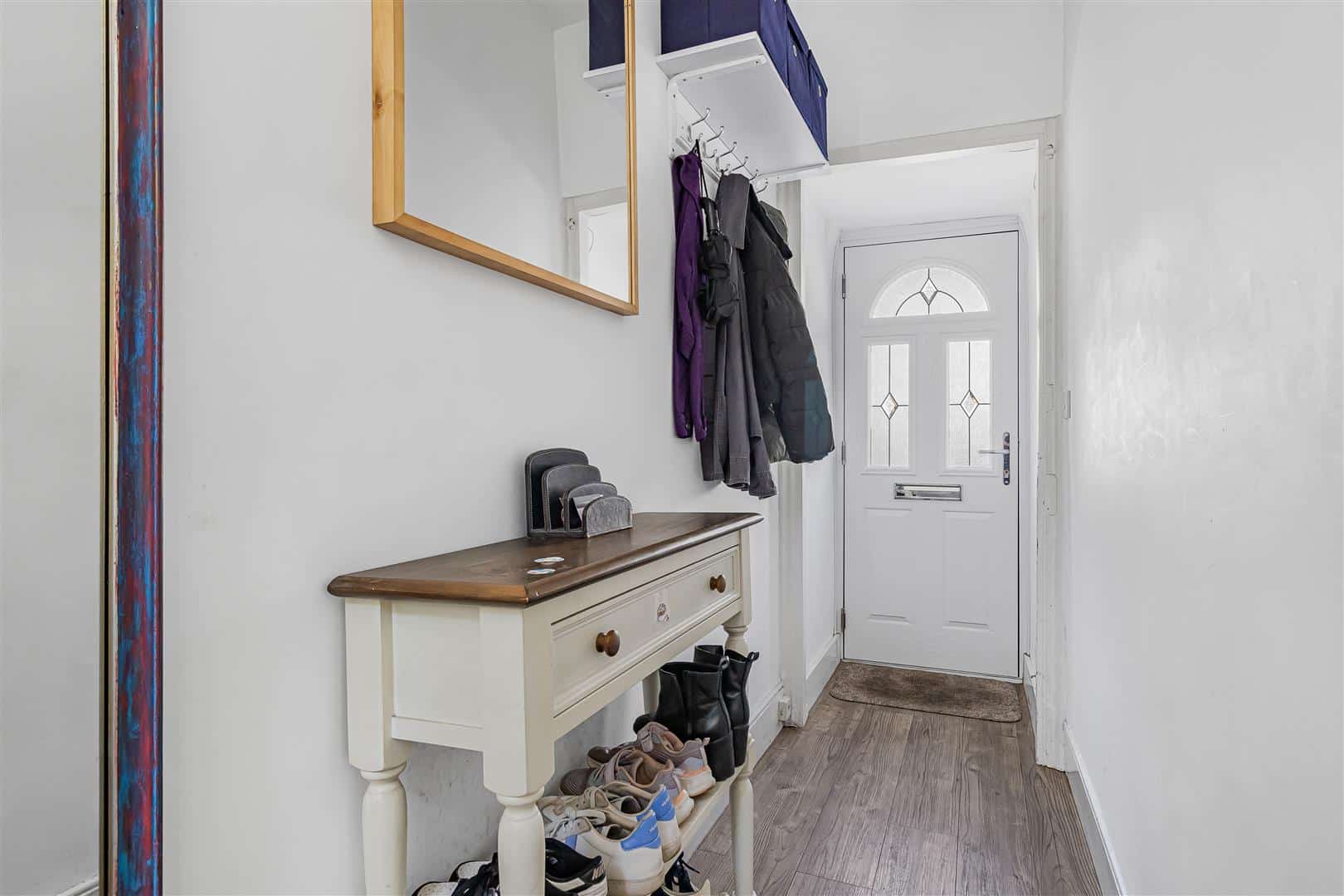 Light entrance hall with luxury LVT wood flooring with doors leading to the kitchen/breakfast room, dining room, living room and cloakroom. Built-in under stair storage cupboard. Radiator. Stairs leading to the first floor landing.