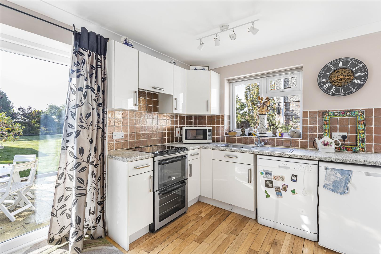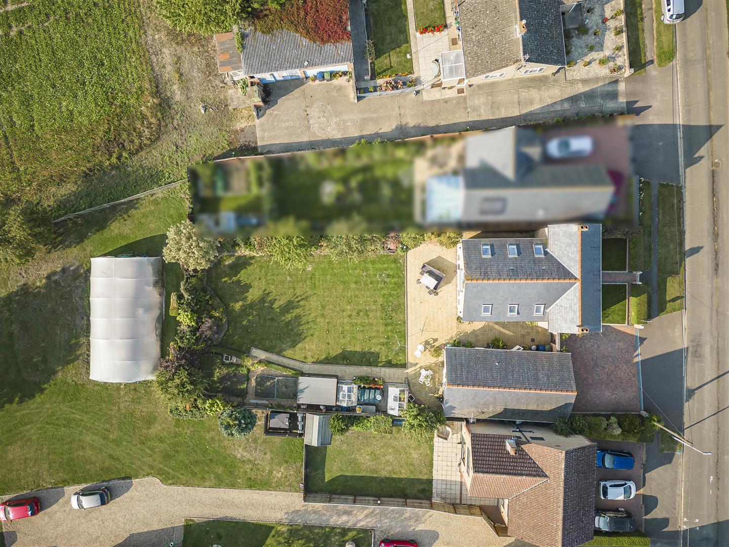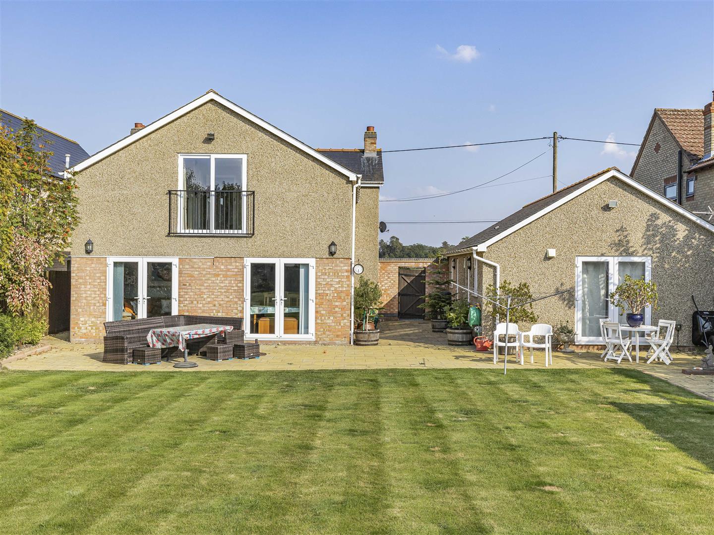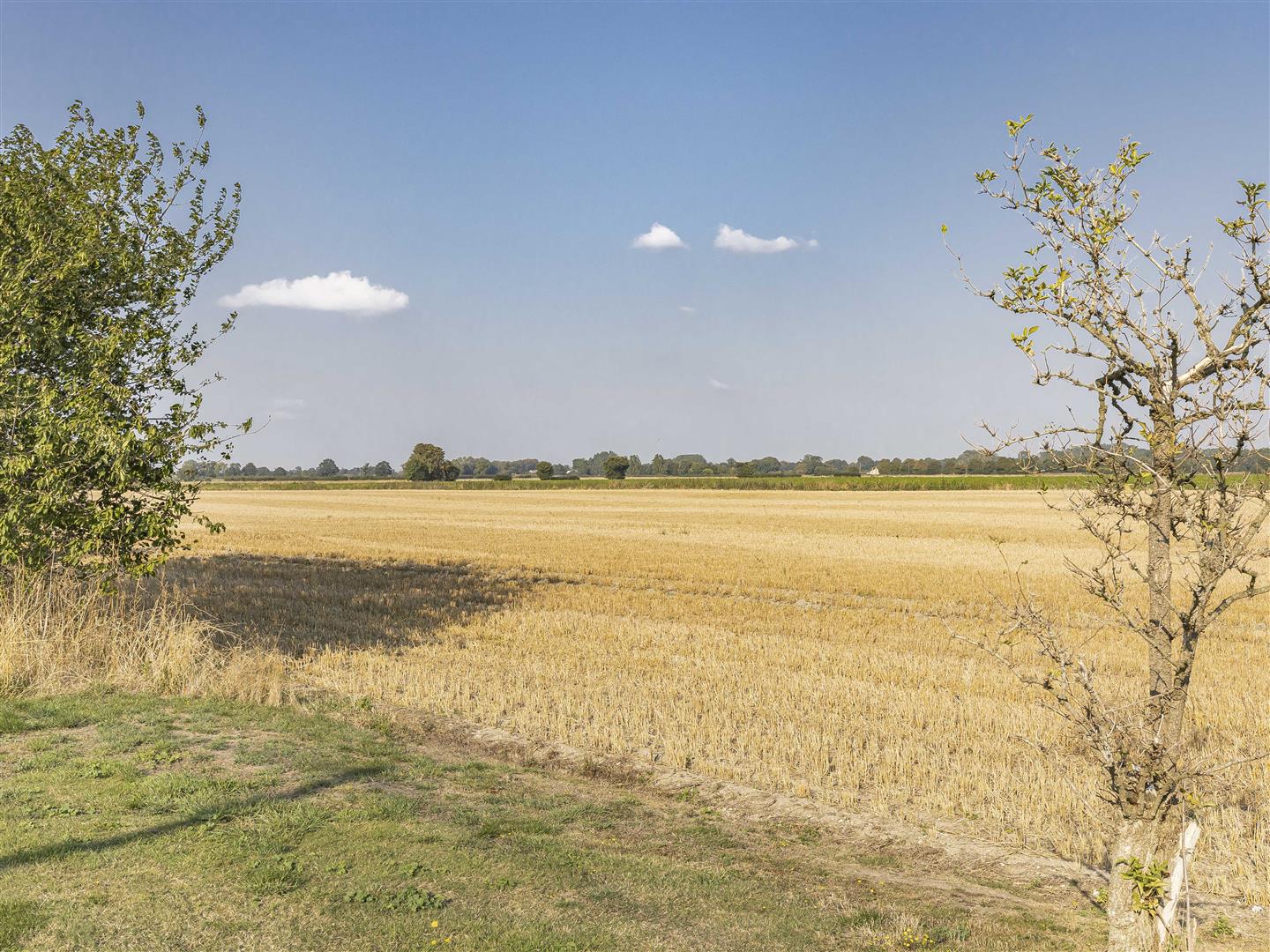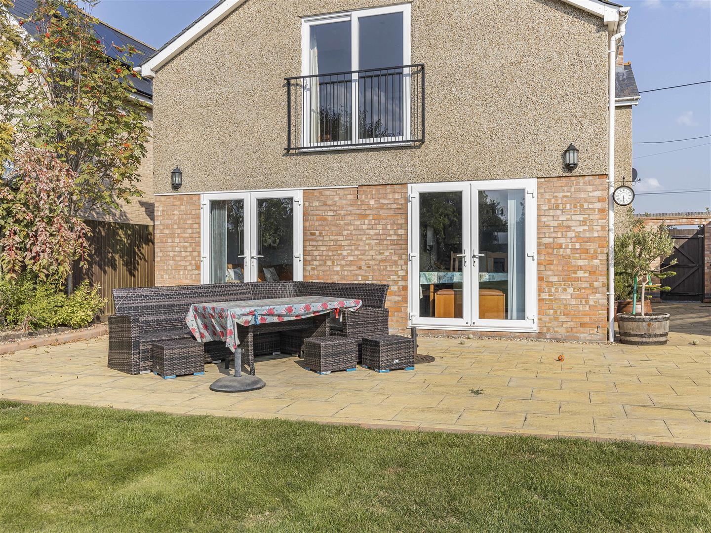 Beautifully presented rear garden thriving with a variety of vibrant trees. shrubs and flowers. Far stretching views overlooking open fields.