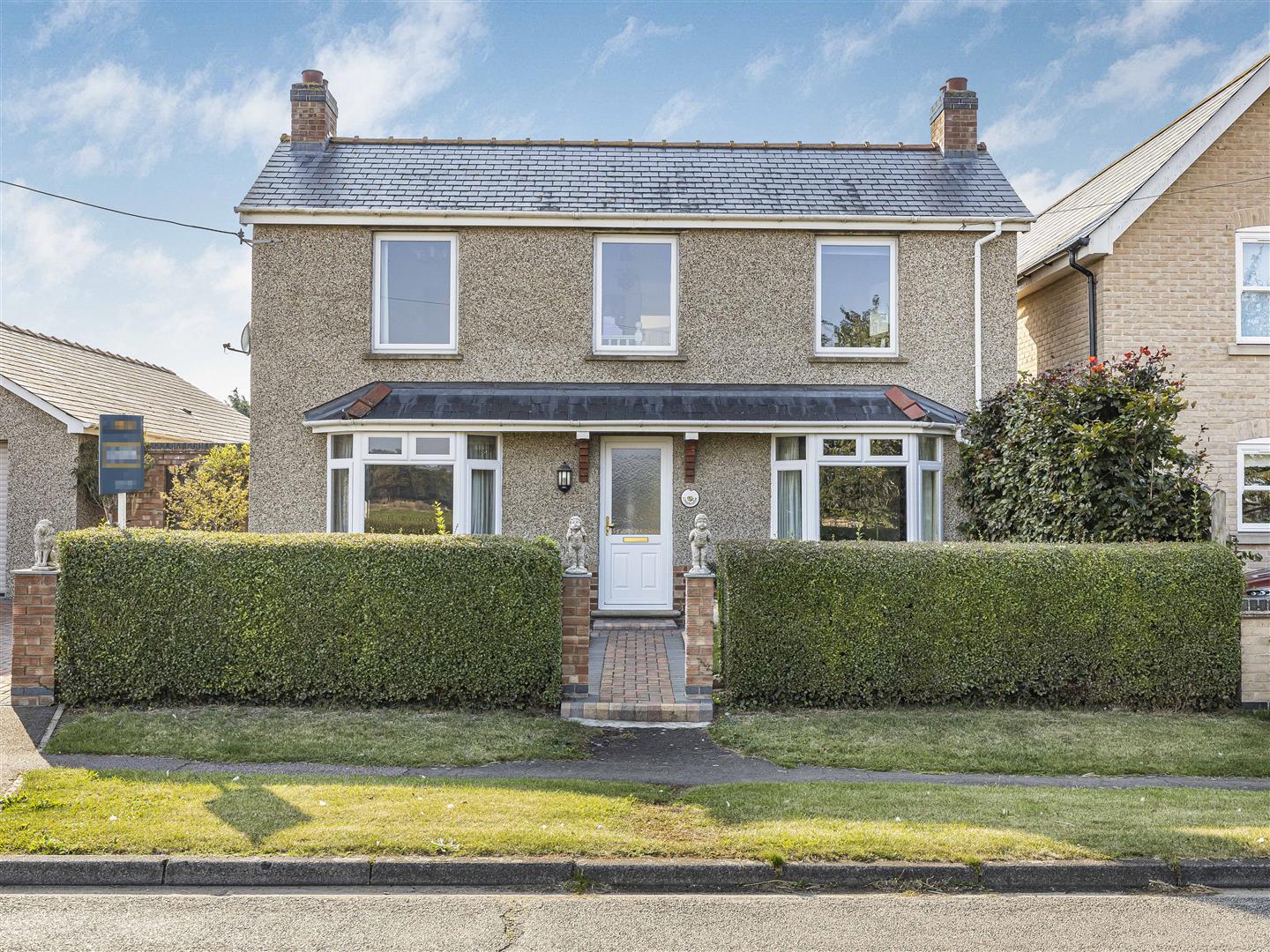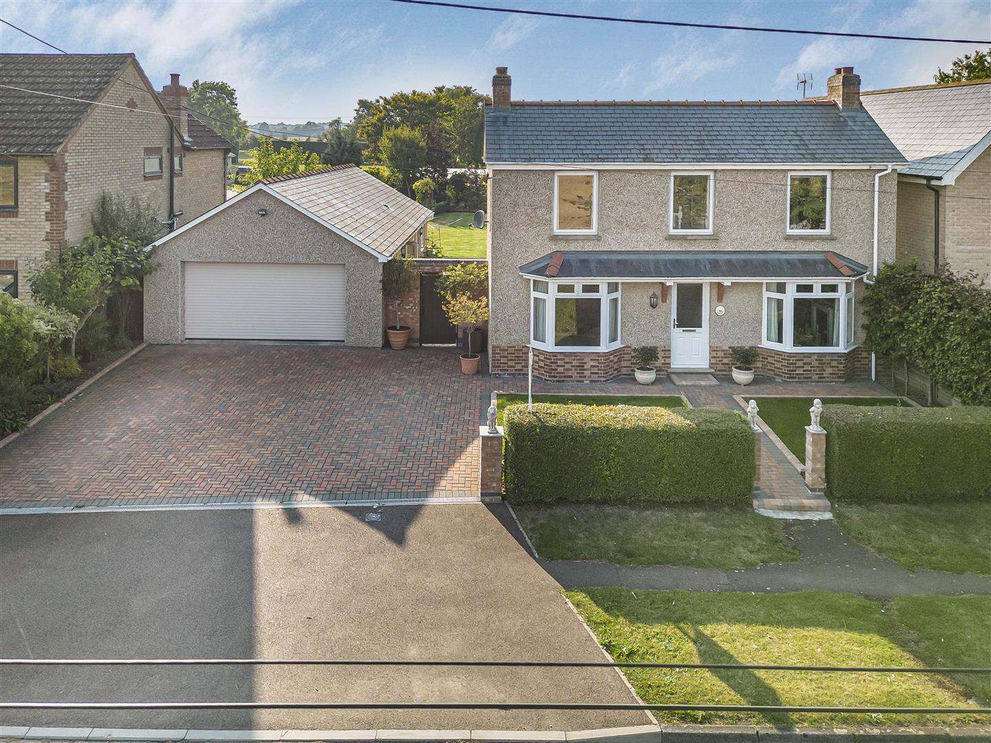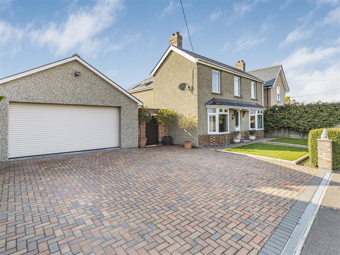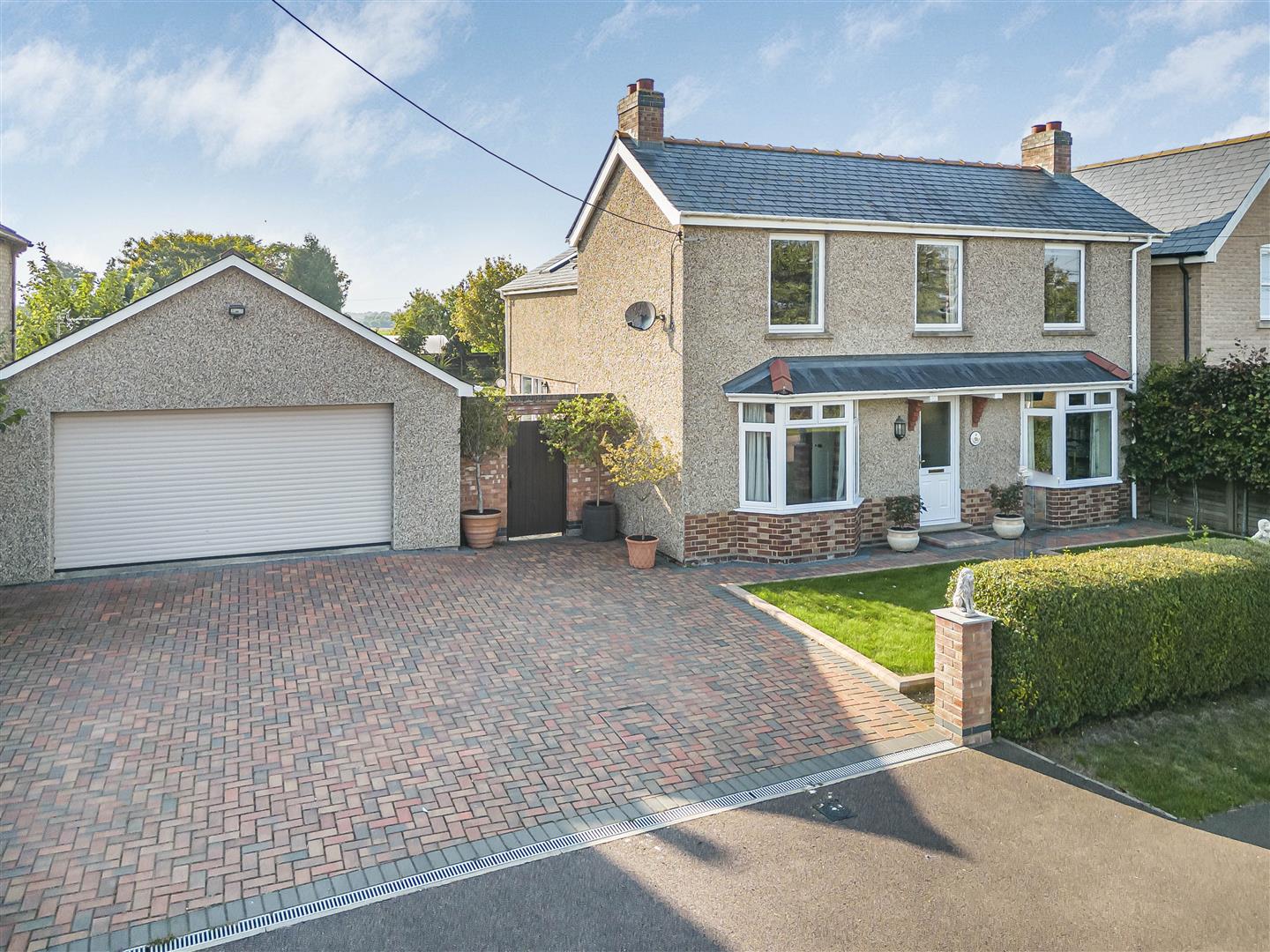 Extensive bloc paved driveway creating ample off-road parking spaces. Laid to lawn frontage with prestige hedging.