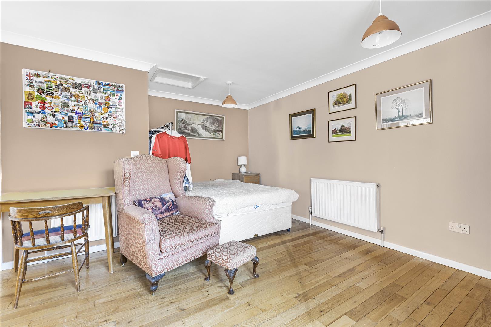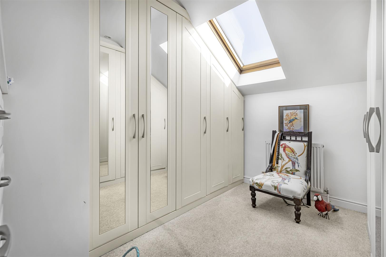 This versatile room currently used as a dressing room fitted with a range of wardrobes and drawers. Radiator and Velux window.