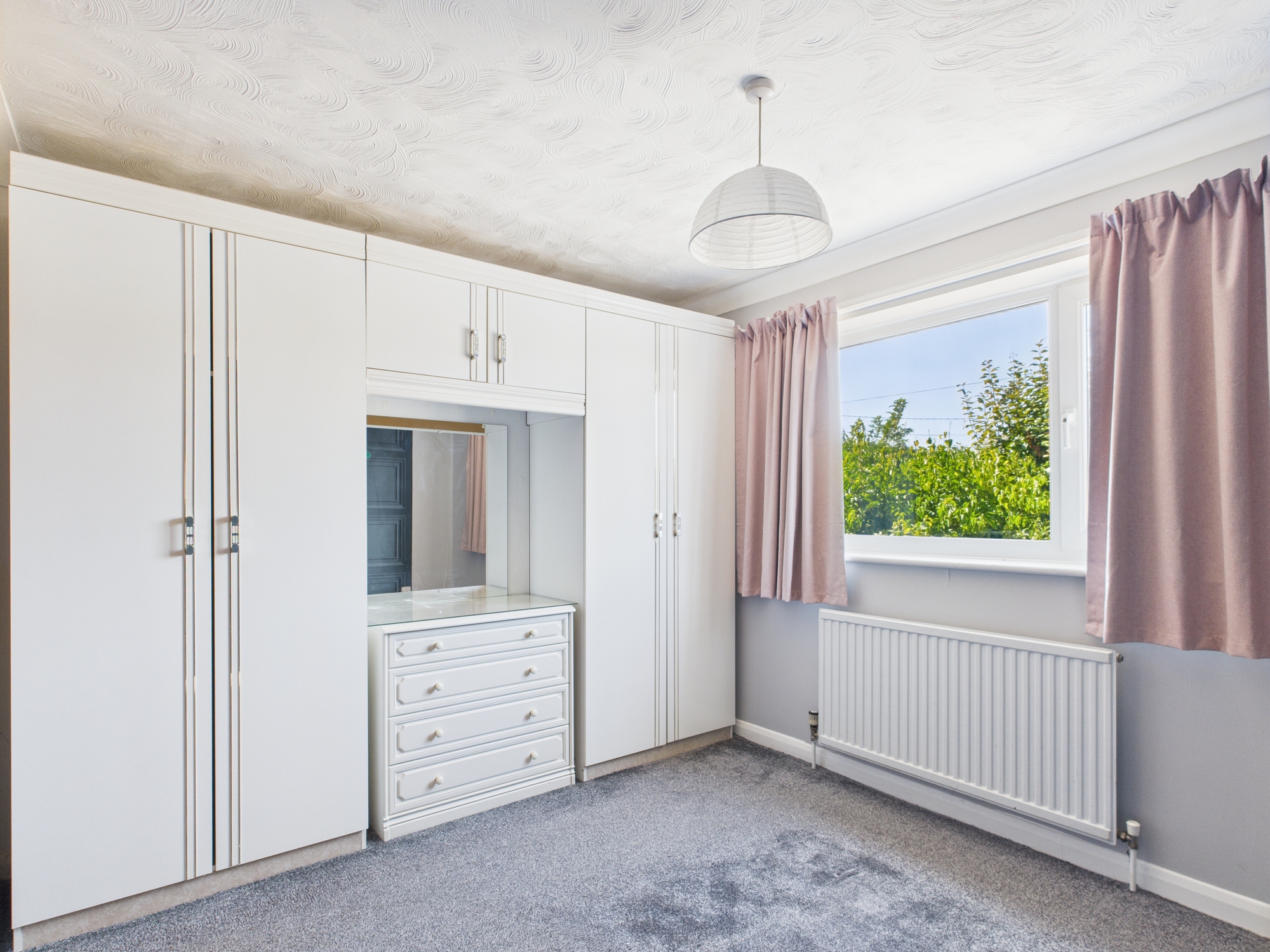 uPVC double glazed window to front, wall mounted single panel radiator, built in wardrobes and storage, textured and coved ceiling.
