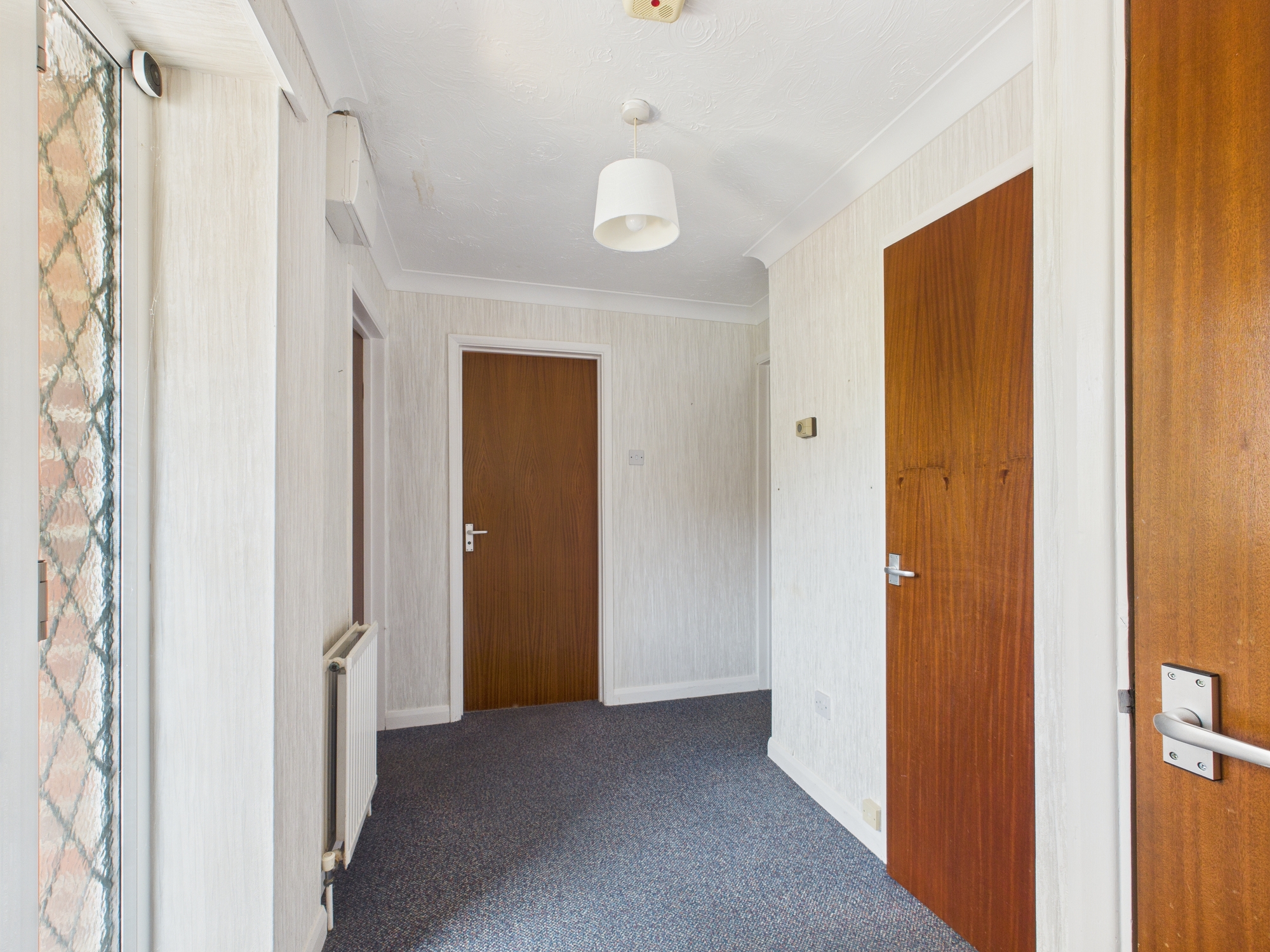 Wall mounted double panel radiator, door to airing cupboard housing hot water cylinder and shelving, textured and coved ceiling, doors to all rooms.