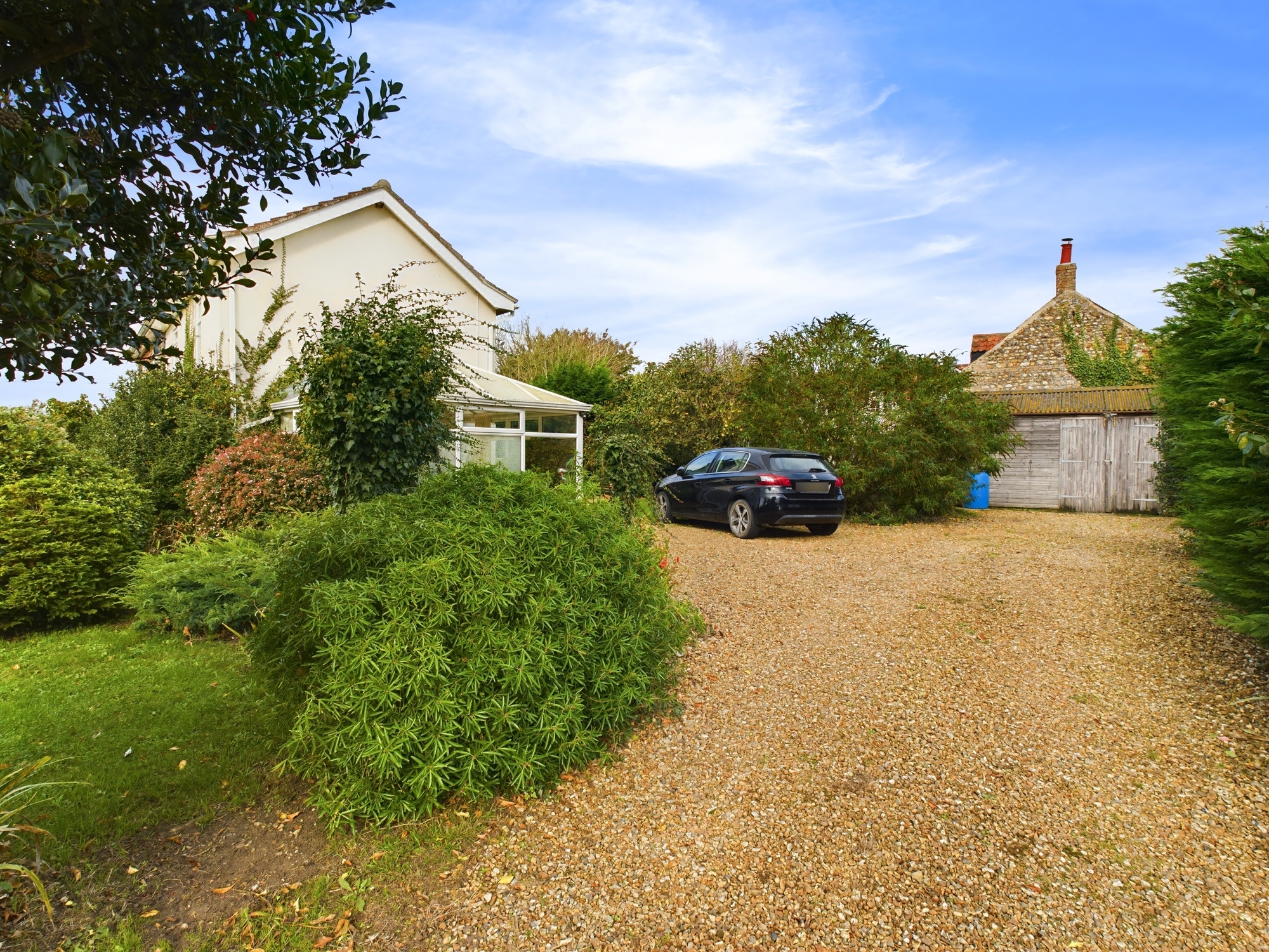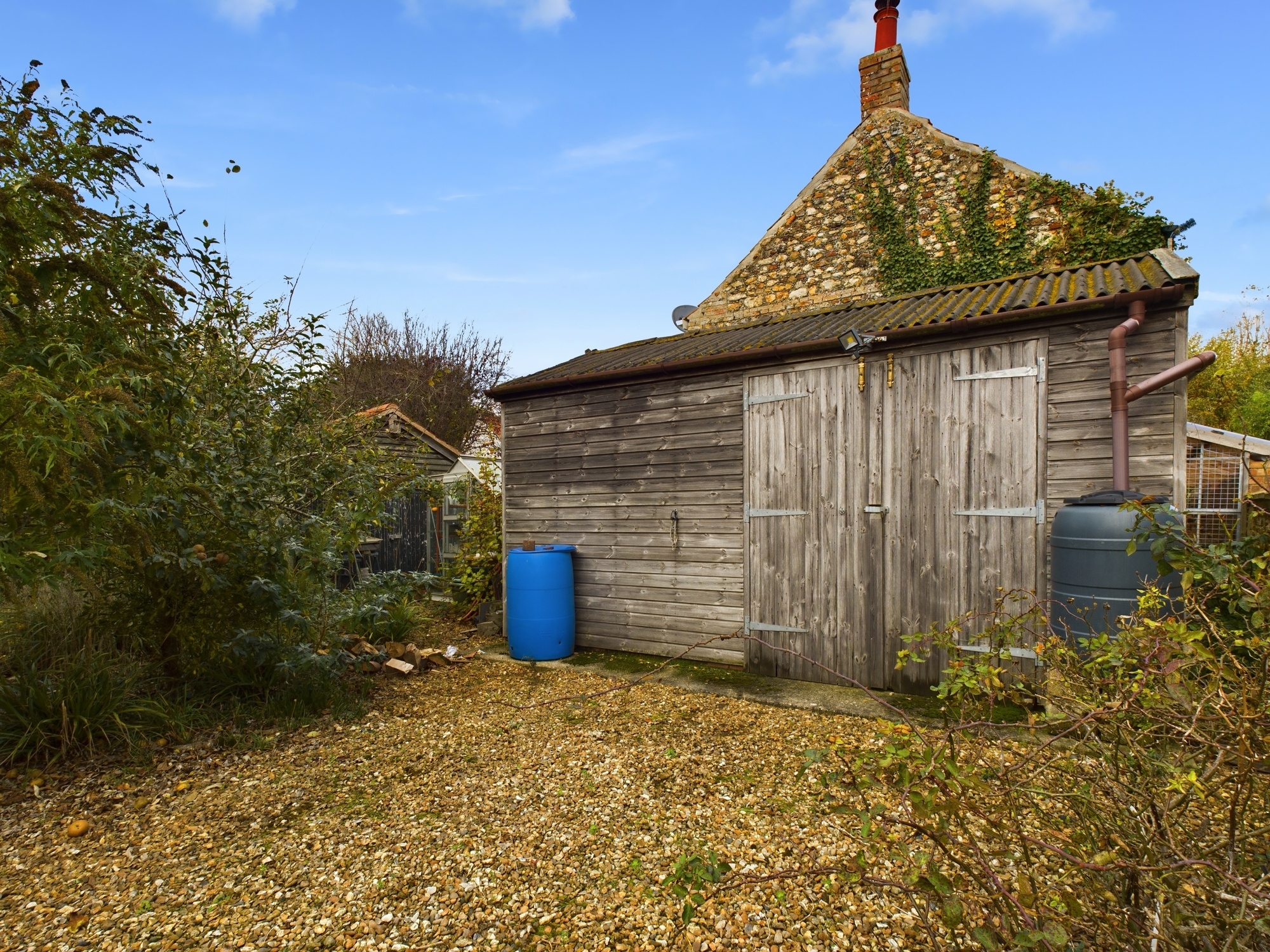 The front of the property is laid to lawn with a range of mature bushes and shrubs inset enclosed by a rail fencing and a path leads to the front entrance door. To the side there is a shingle driveway providing off road parking. The rear garden is laid to lawn with a range of mature shrubs and trees inset with a patio and wooden storage outbuilding. There is also a further outbuilding with double doors to the front and a green house. There is a free standing oil tank behind the outbuilding.
