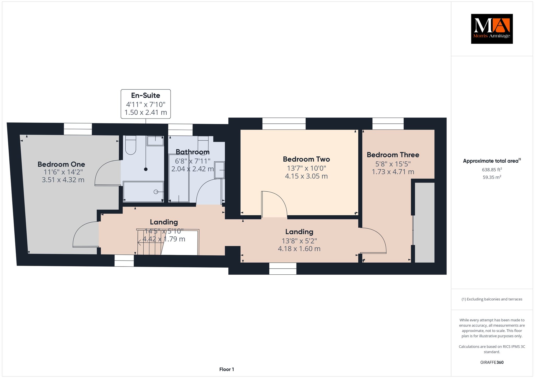 Bedroom One 14’2” x 11’6” (4.32m x 3.51m)