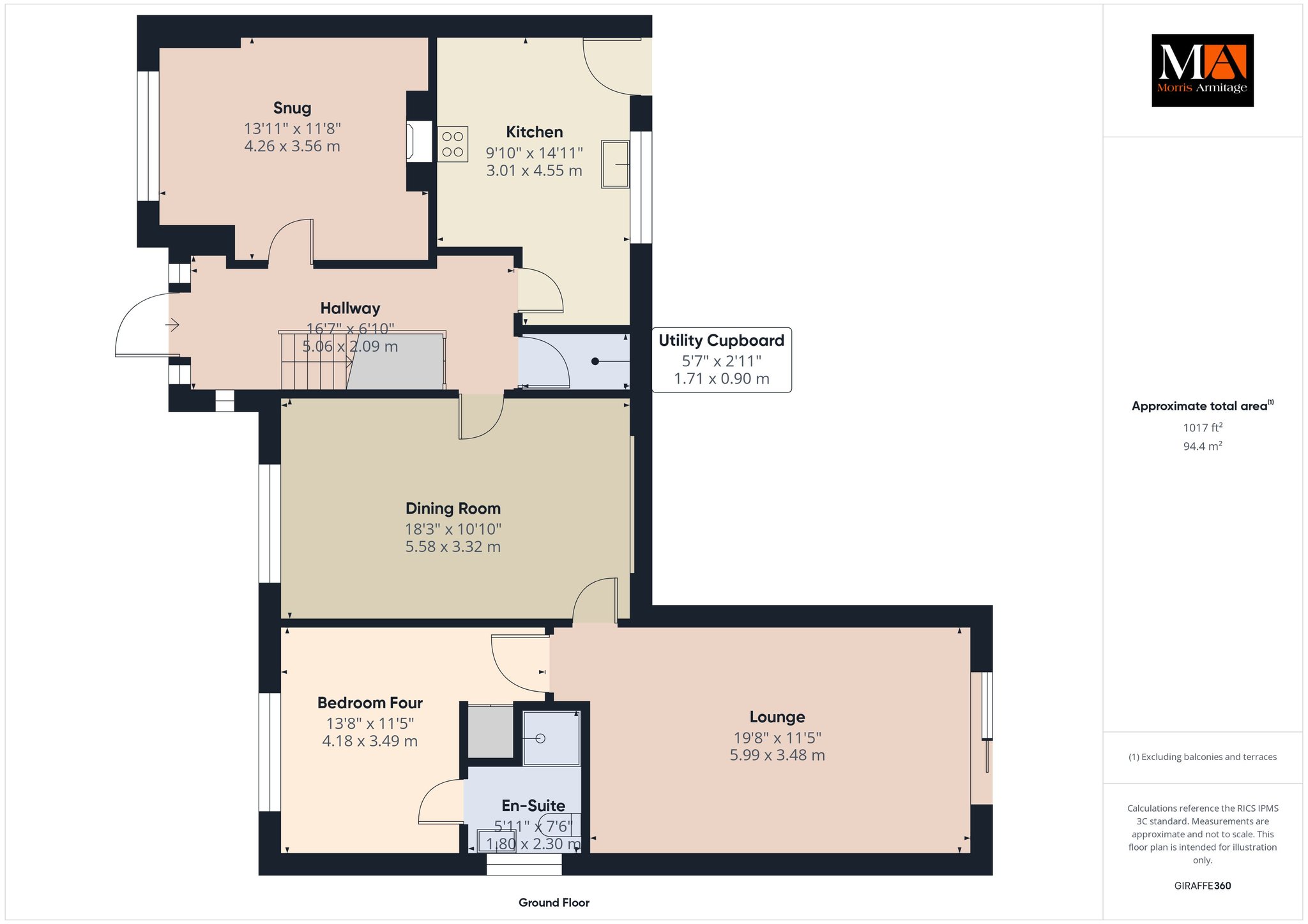 Dining Room 18’3” x 10’10” (5.58m x 3.32m)