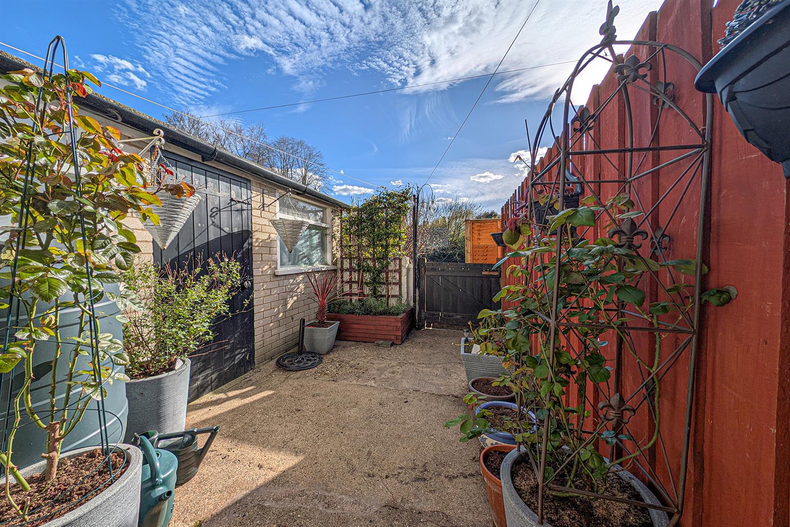 Sunny courtyard garden with access gate to the rear. Brick built outbuilding, offering a variety of uses. Door leading to the kitchen.