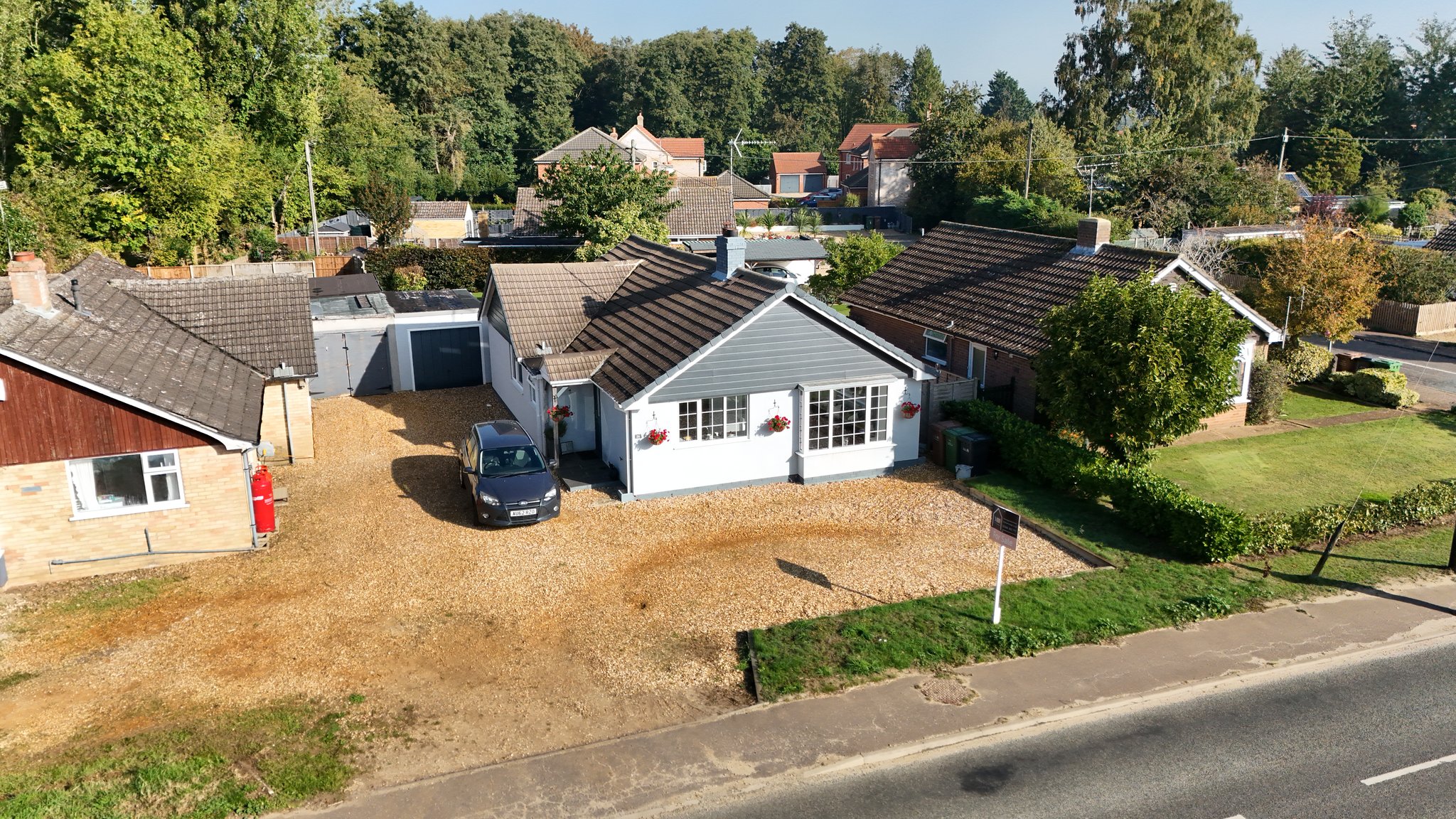 *NO ONWARD CHAIN* A superbly refurbished 3-bedroom detached bungalow on the edge of this popular village. Modernised with new wiring, flooring, and decoration, this home is ready to move straight into. The sleek kitchen comes fully fitted with integrated appliances, while the 18ft lounge enjoys a large picture window creating a bright and welcoming space. All three bedrooms are generously sized, with one leading to a conservatory opening onto the garden. The bathroom is finished to a modern standard with both a bath and separate shower. Outside, the enclosed rear garden features a lawn and decked seating area, perfect for relaxing. To the front, a shingle driveway and garage provide ample parking. The property also benefits from UPVC double glazing, oil central heating, and a smart rendered exterior with new guttering, soffits, and fascias.