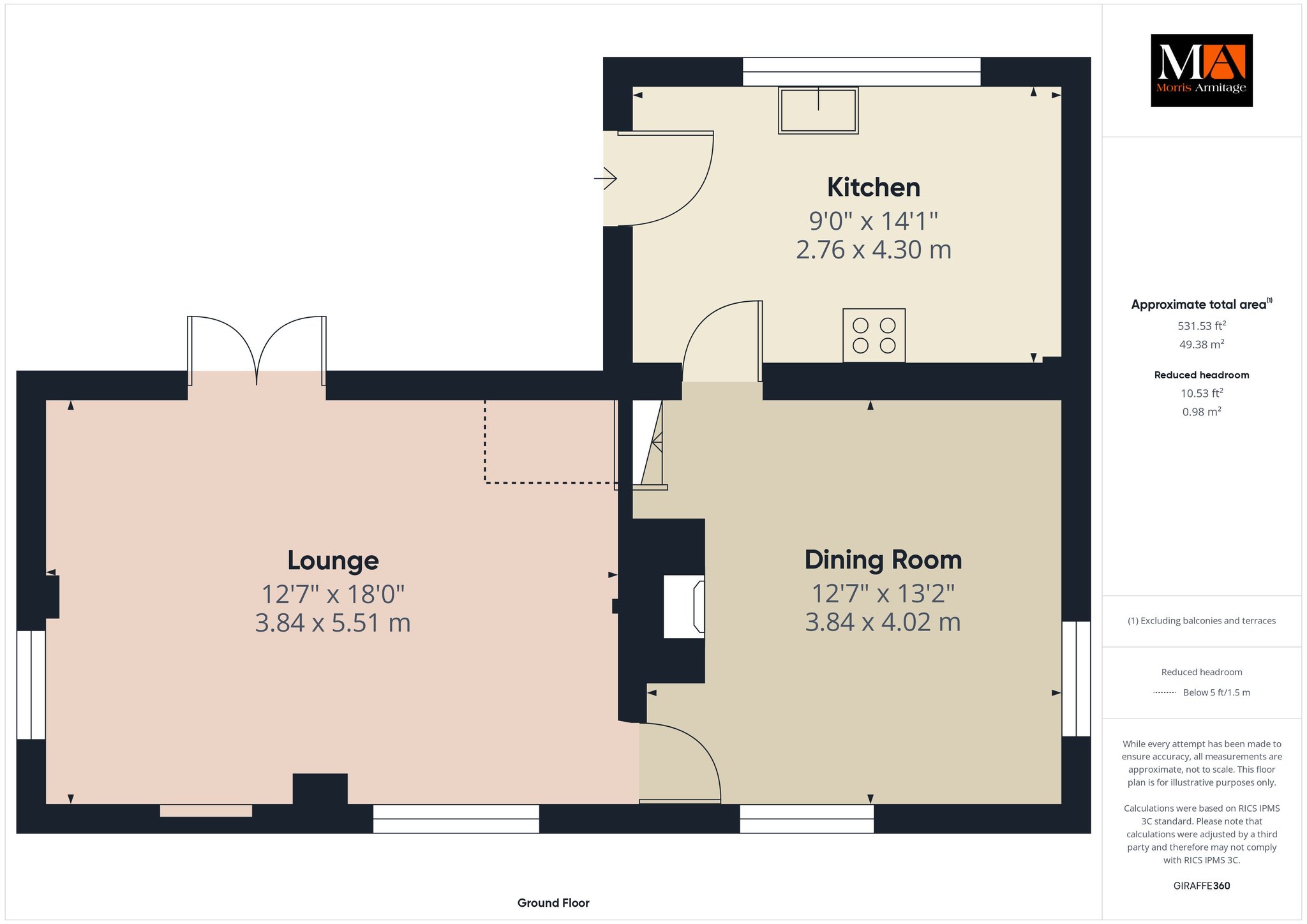 Dining room 13’2” x 12’7” (4.02m x 3.84m)
