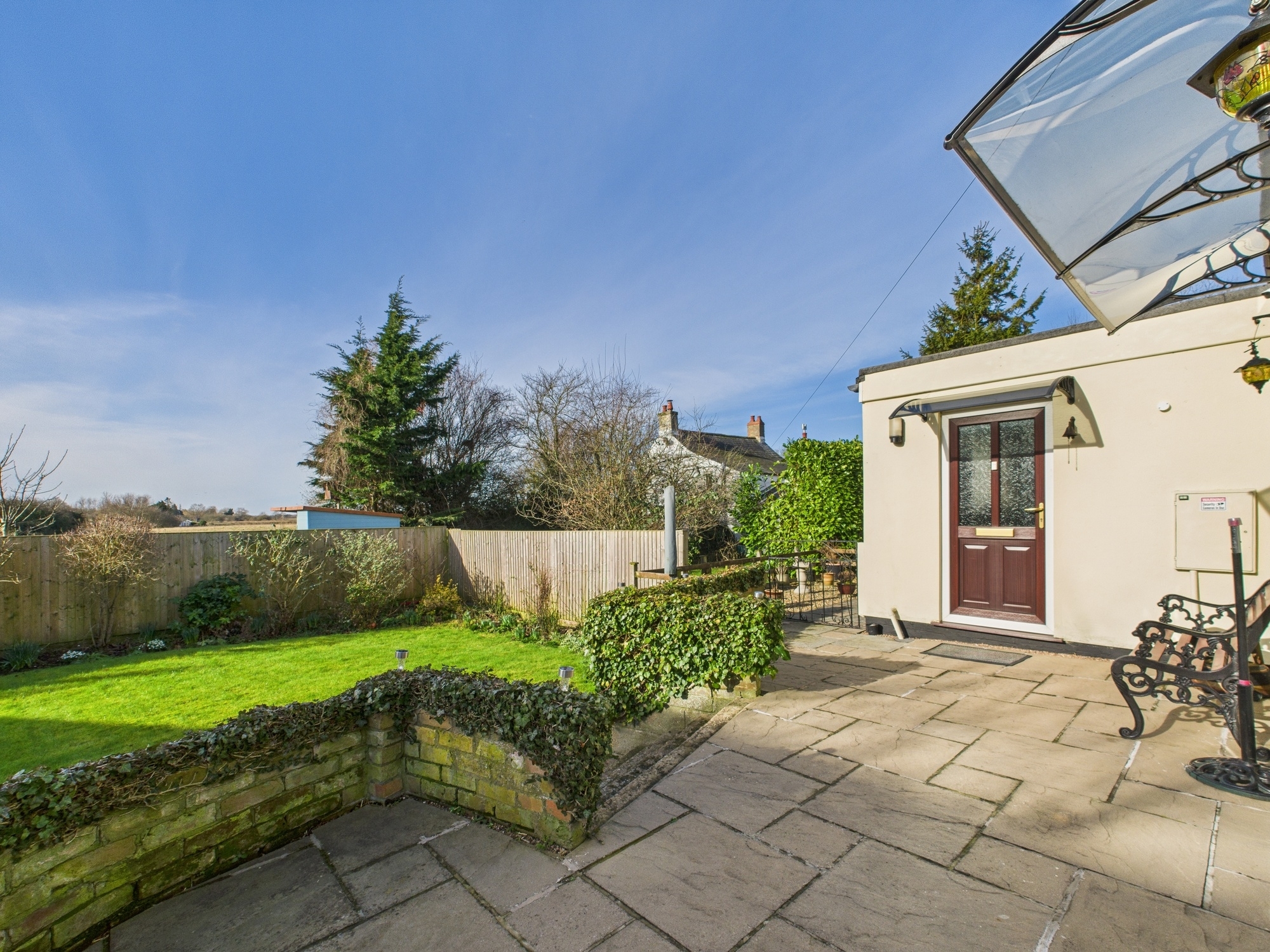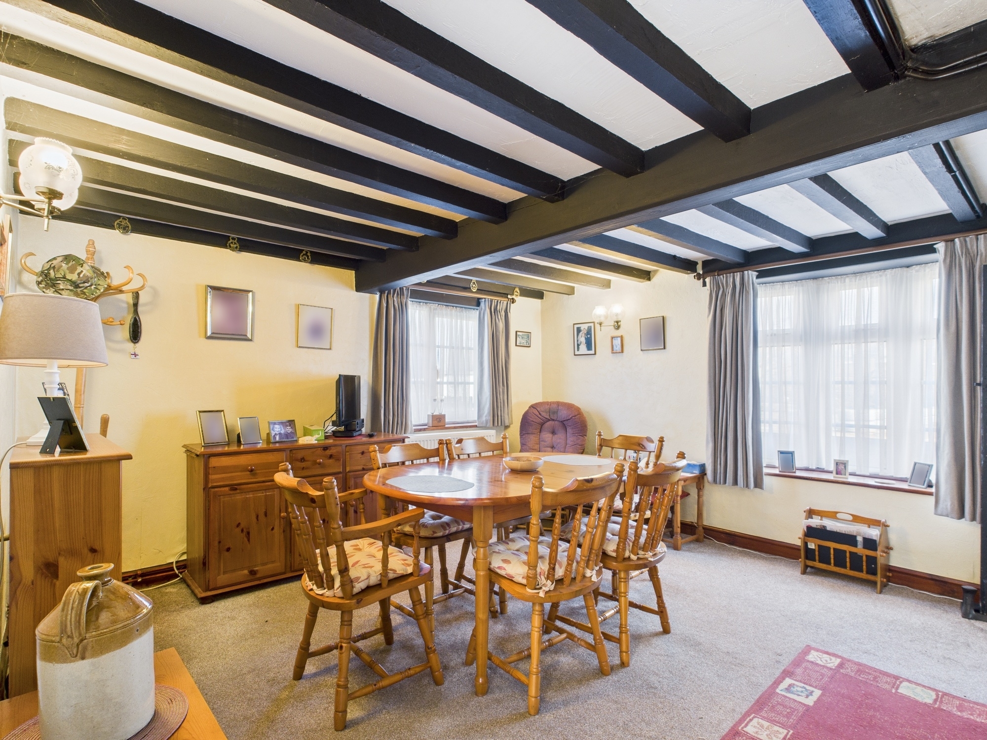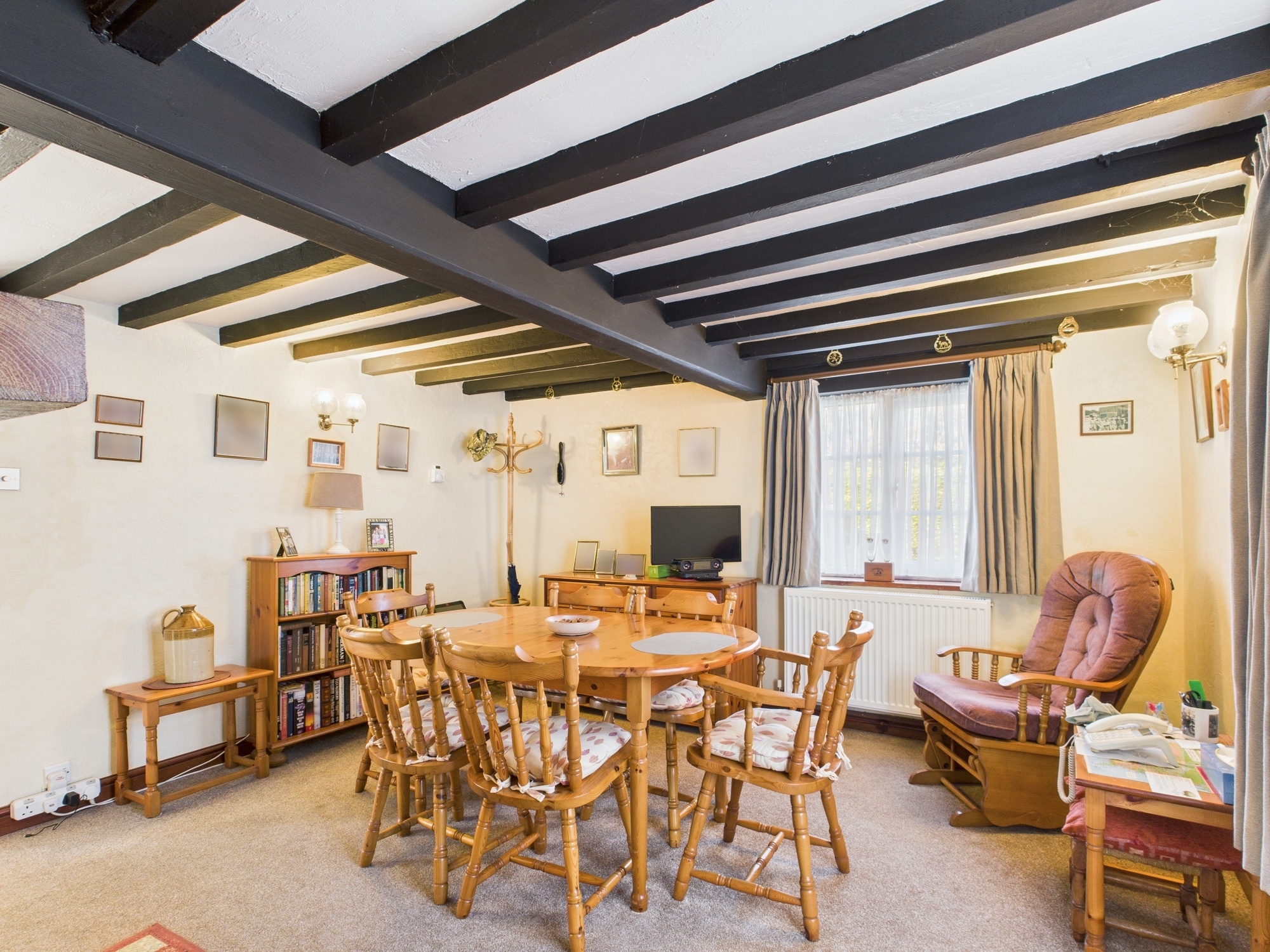uPVC double glazed windows to front and side, uPVC double glazed French doors to patio, 2 double panel radiators, wall mounted electric heater, textured and beamed ceiling, shelved recess, telephone point, t.v point.