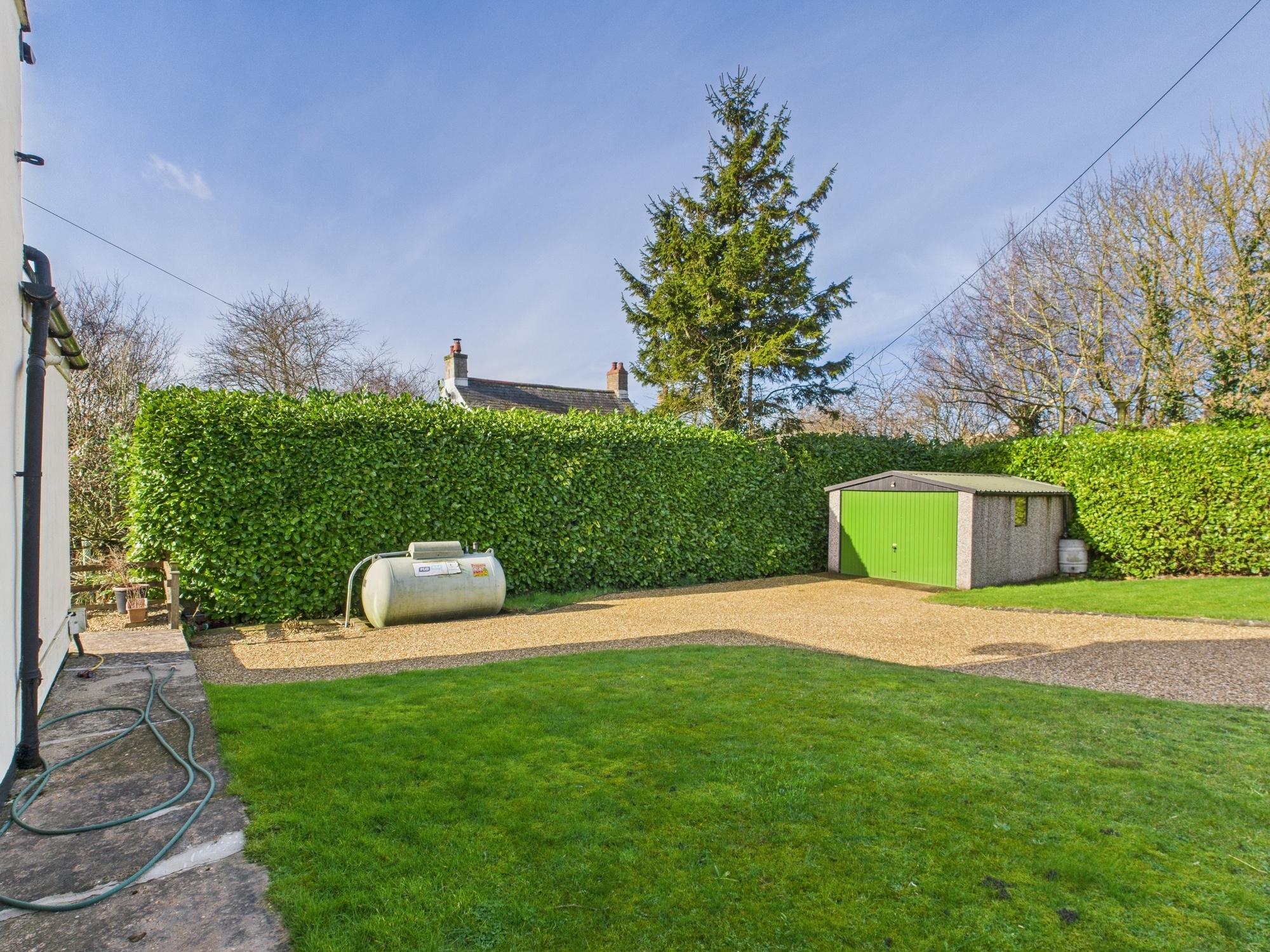 To the side of the property is a garden area laid to lawn and a large gravelled parking and turning area and detached sectional garage which measures 15’8” x 10’10” with metal up and over door. To the other side of the property are wrought iron gates opening to a further parking/hard standing area. To the rear of the property is a gravelled area and patio area with steps leading down to the well established and maintained garden which is laid mainly to lawn with trees, bushes, shrubs and flowers inset to borders.