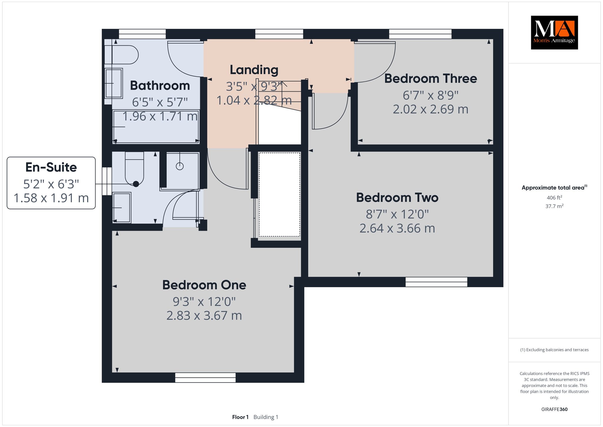 Bedroom One 12’0” x 9’3” (3.67m x 2.83m)