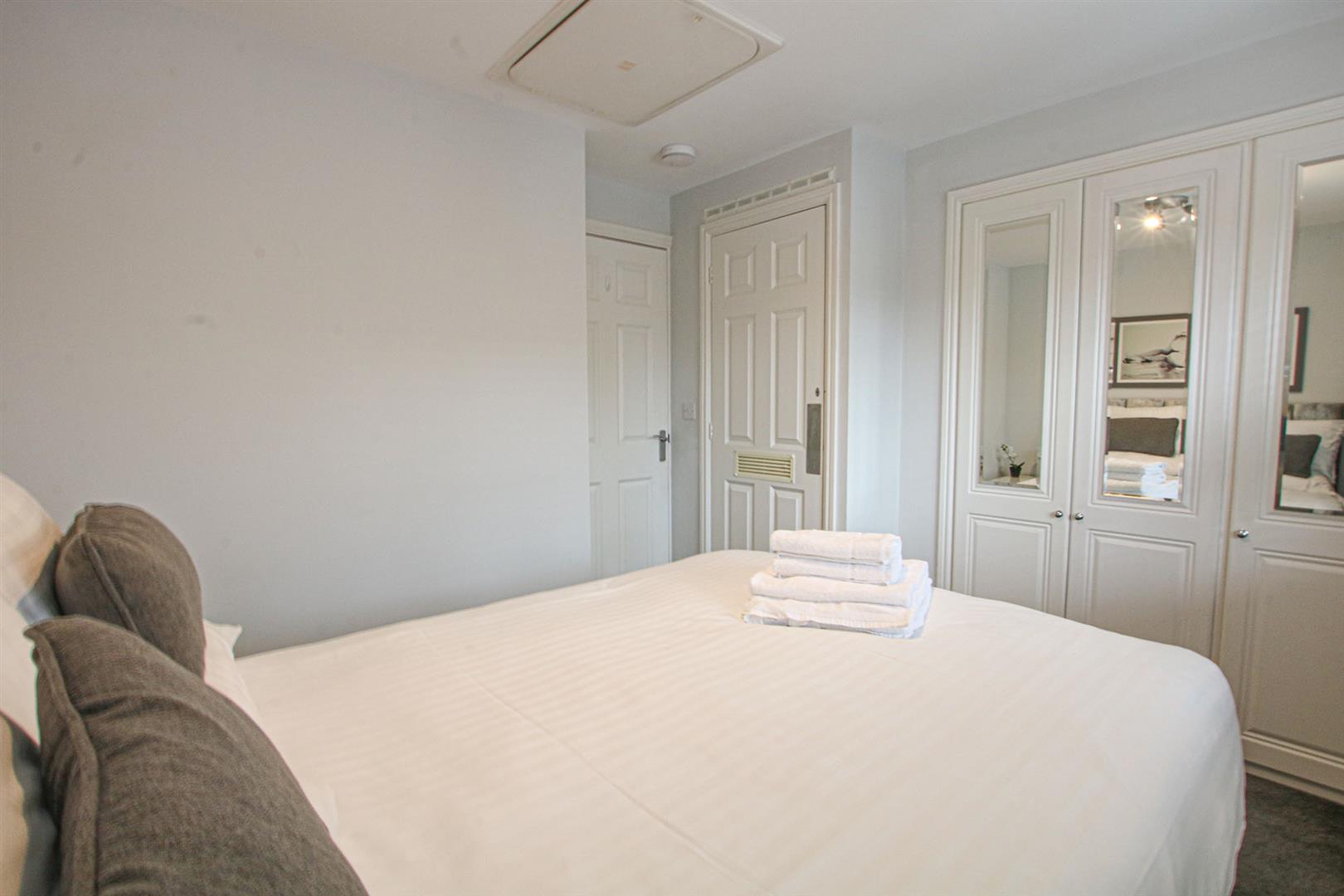 Double bedroom with built-in wardrobes and storage cupboard. Radiator. Window to the front aspect. Door leading to the landing.
