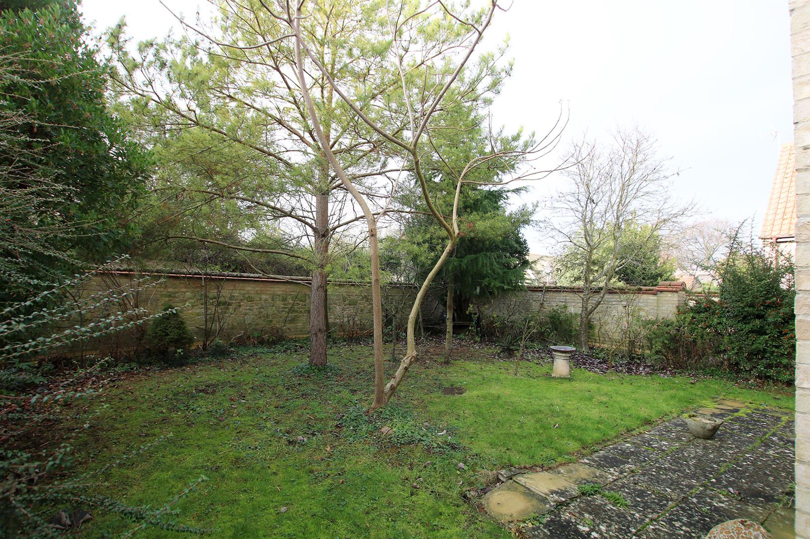 Pretty enclosed garden with attractive walled boundary. Mainly laid to lawn with established shrub and tree planting.