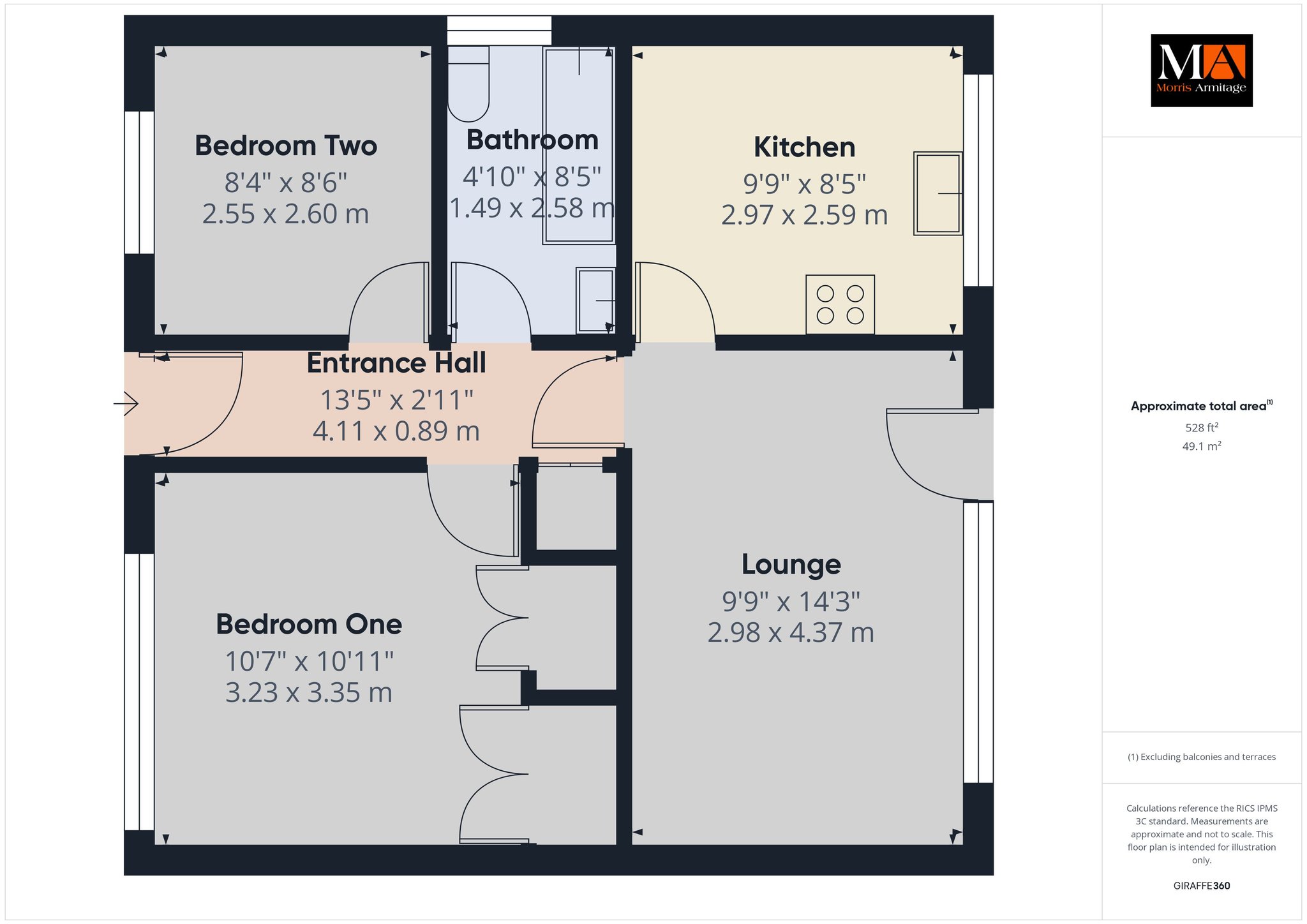 Kitchen 9’9” x 8’5” (2.97m x 2.59m)