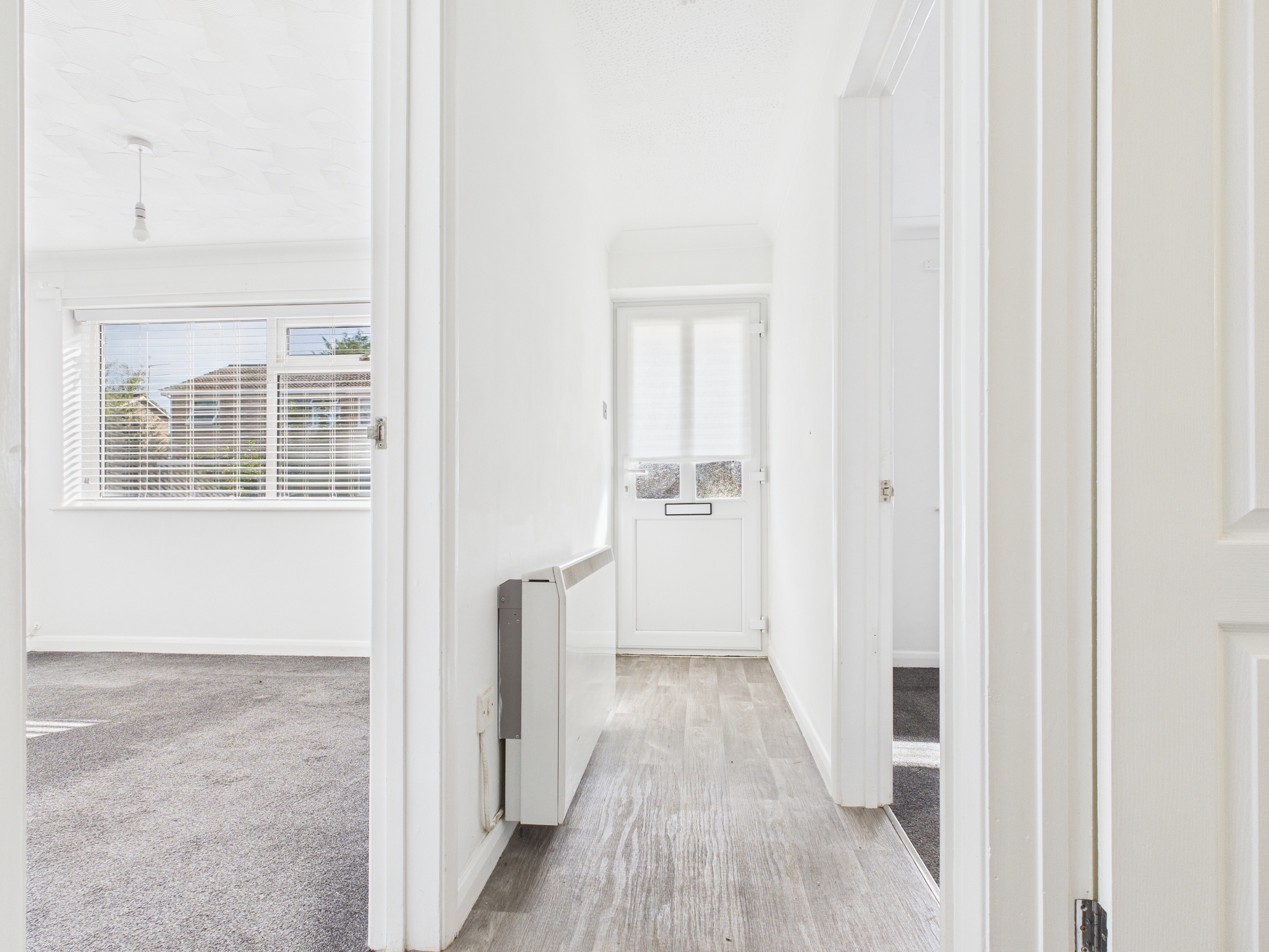 Wall mounted electric night storage heater, textured and coved ceiling, doors to all rooms.