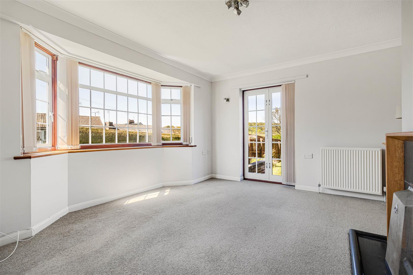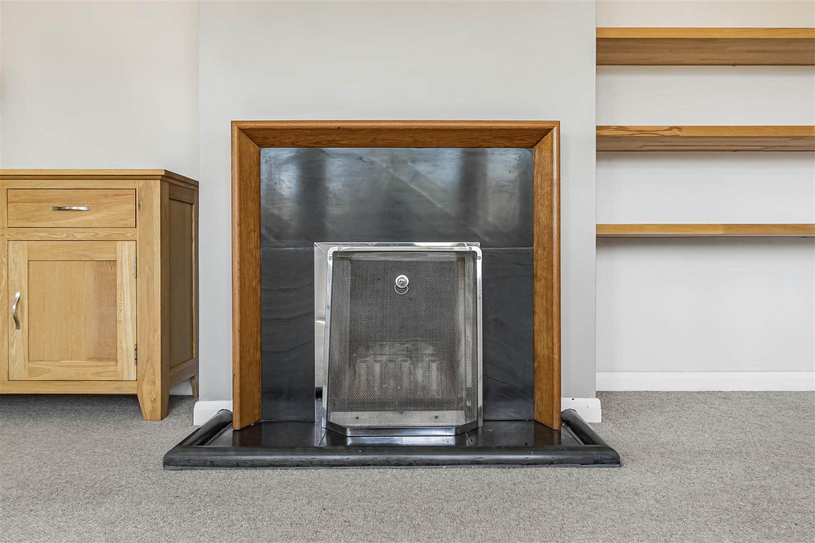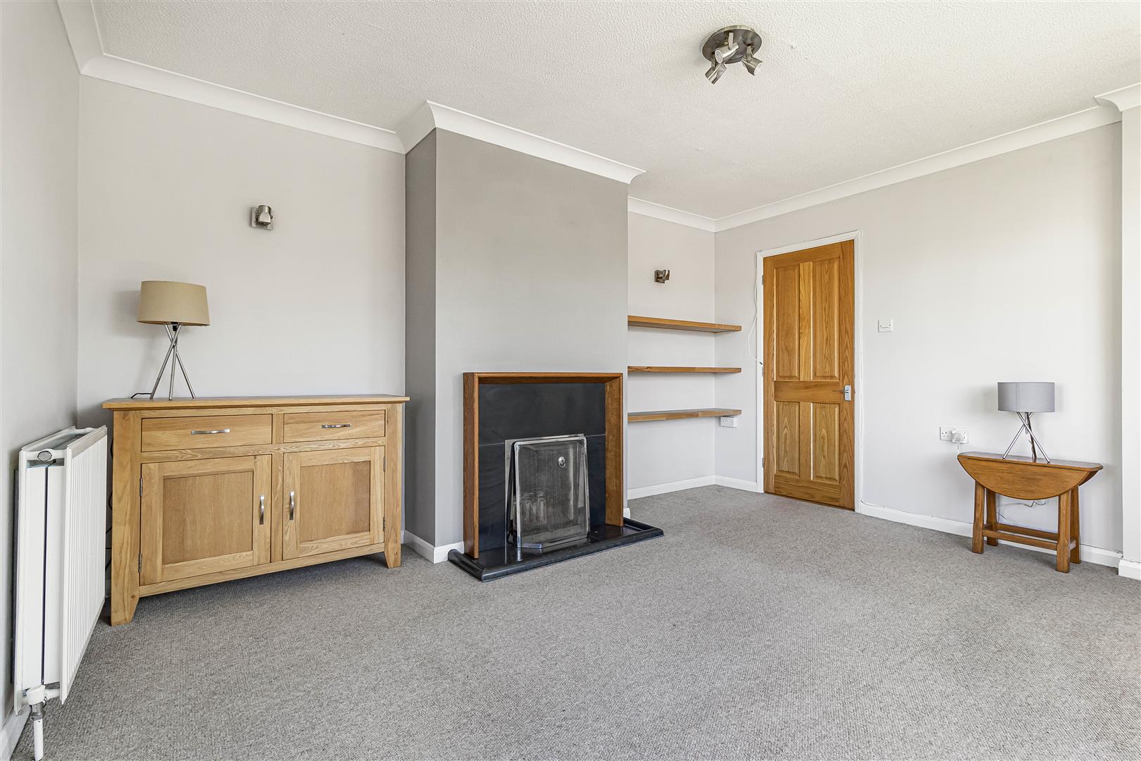 Well presented, spacious living room with large bay window to the front aspect. French doors leading to the rear garden. Focal fireplace with wooden and stone surround and mantel, stone hearth. Radiator. Door leading to the entrance hall.