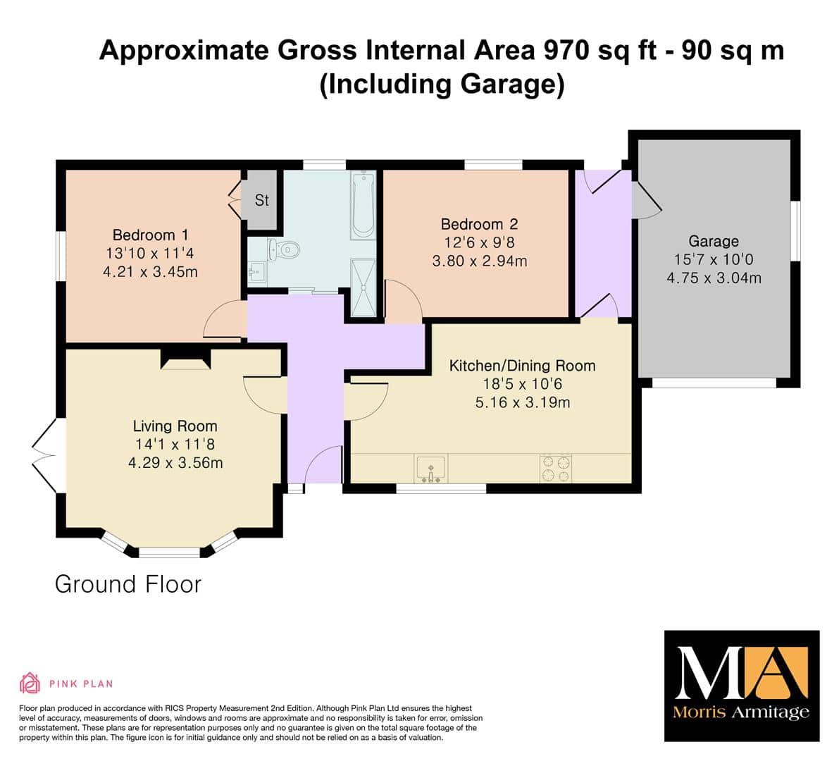 Thoughtfully laid out, the property boasts spacious and light-filled accommodation throughout, comprising a welcoming entrance hall, a generous living room, a well-appointed kitchen/dining room, two comfortable double bedrooms, and a modern bathroom.