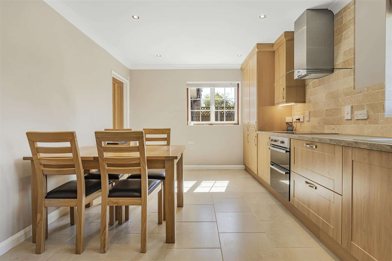 A range of modern fitted cupboards and storage drawers with worktop over. Integrated Hotpoint double oven with inset hob and extractor over. Stainless steel sink and drainer with mixer tap over. Attractive splashback tiling. Tiled flooring. Radiator. Window to the front aspect. Doors leading to the entrance hall and rear lobby.