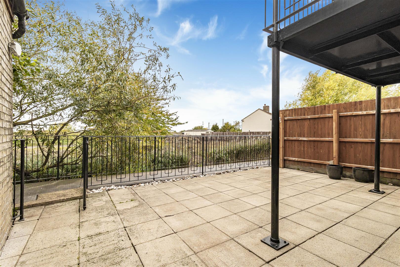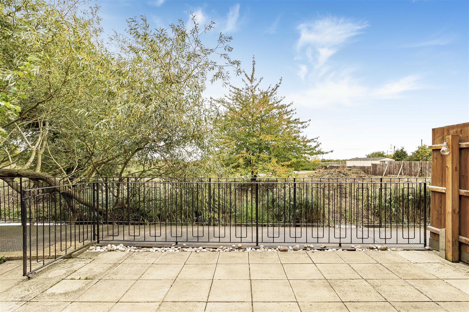 Patio area with French doors leading to the kitchen/dining room. With low railings to the border with a private walkway beyond and views overlooking the surrounding countryside and small watercourse, perfect for watching local wildlife. Pedestrian door to access the studio and garage.