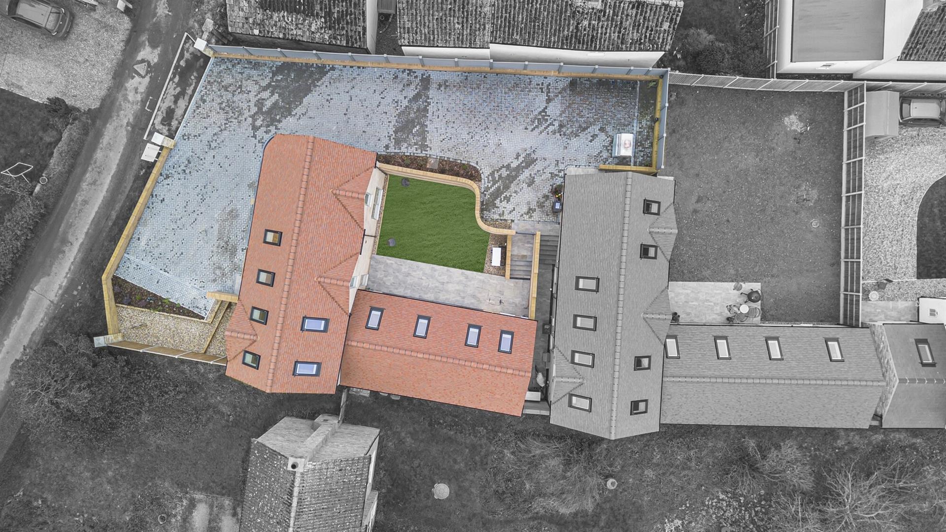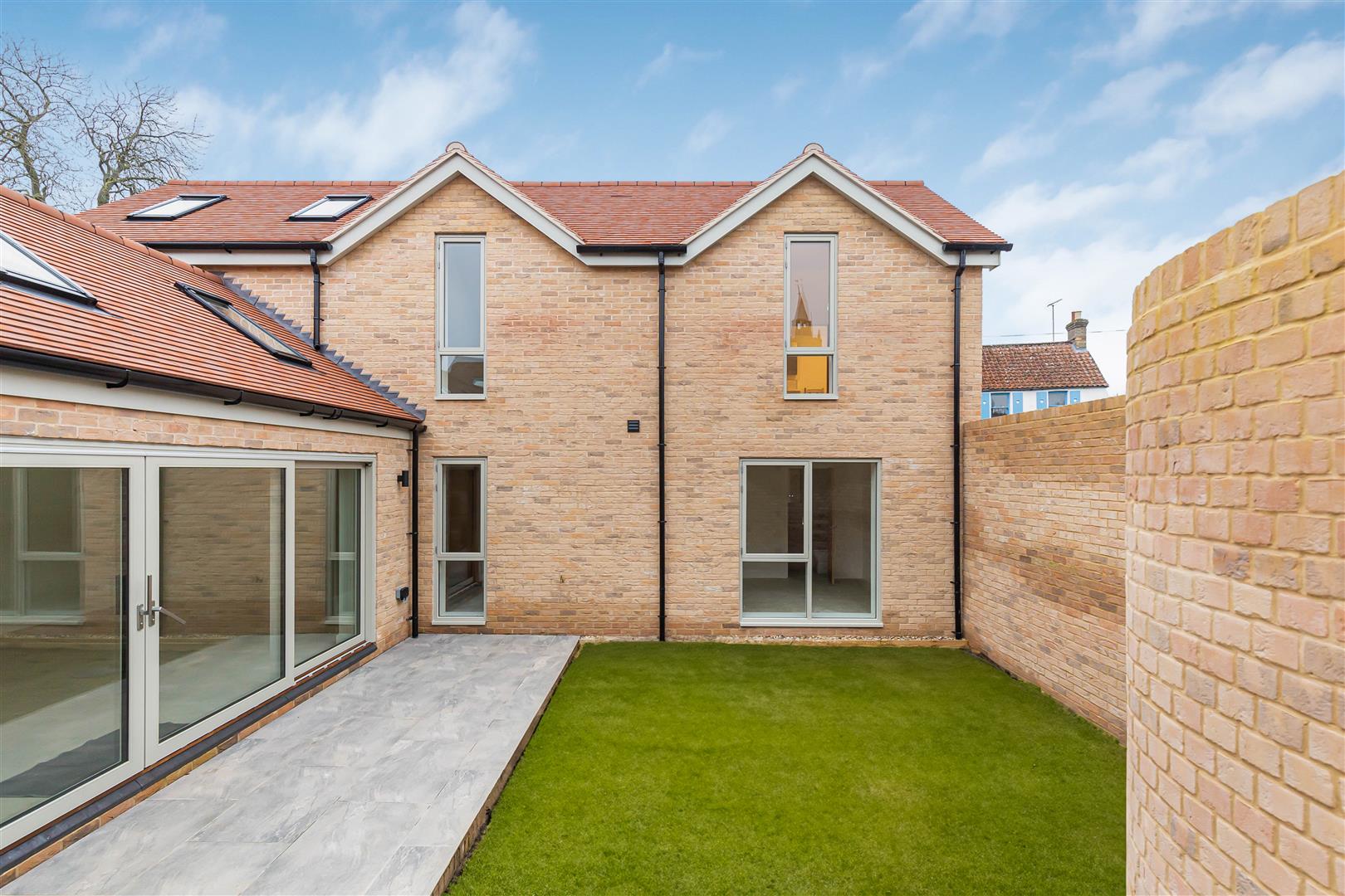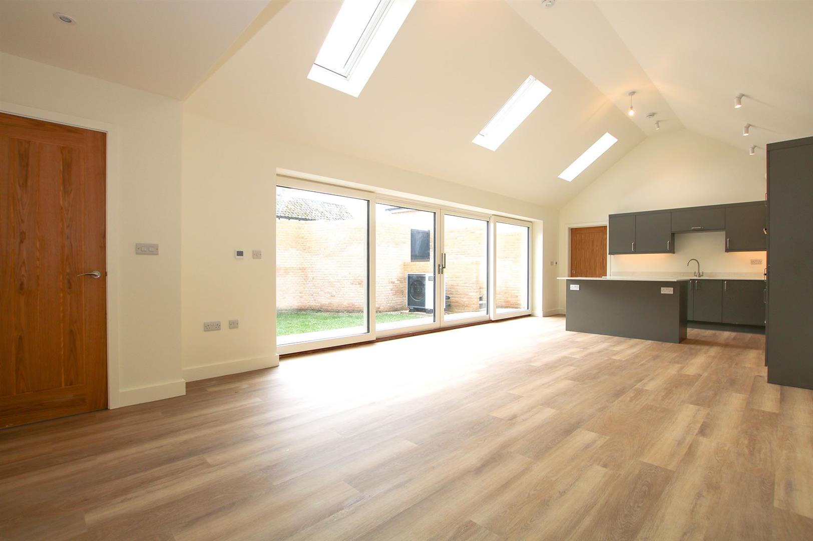 The south-west facing garden offers a patio area with sliding double doors leading to the kitchen/living/dining room with a garden area beyond. An attractive brick wall to the boundary with stairs leading to a pedestrian access gate leading to the driveway. Air source heat pump.