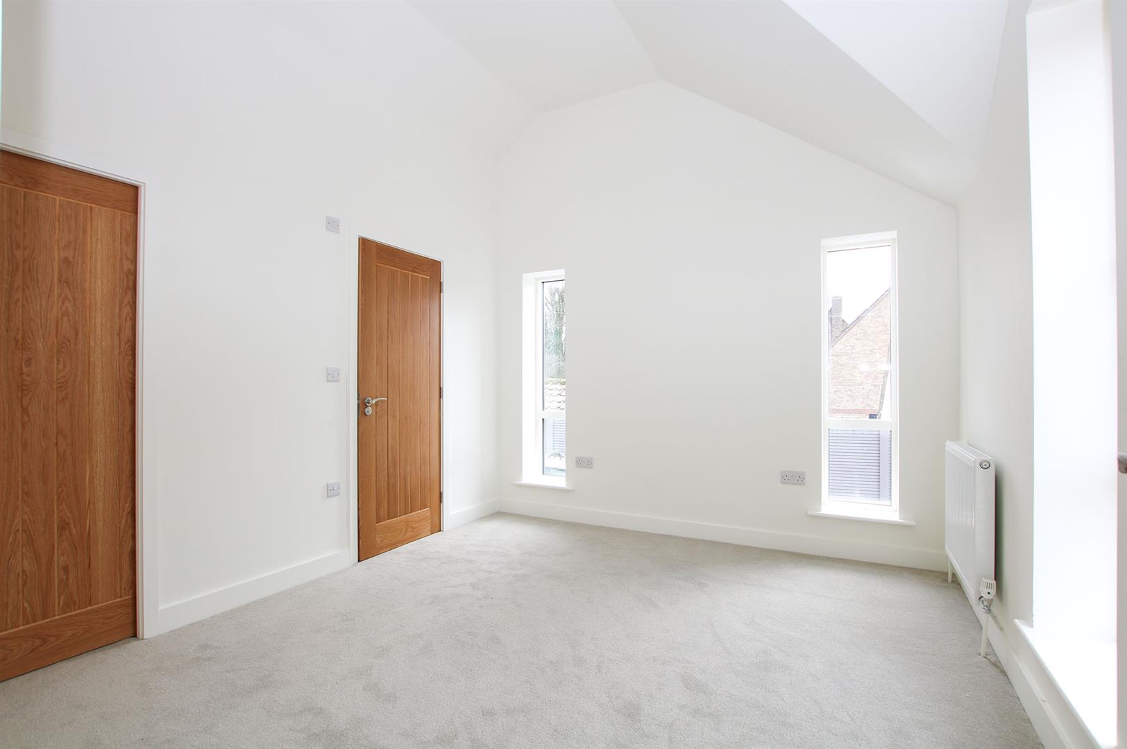 Spacious double bedroom with quadruple velux windows and a full height window to the front aspect. Vaulted ceiling. Radiator. Door leading to the landing.