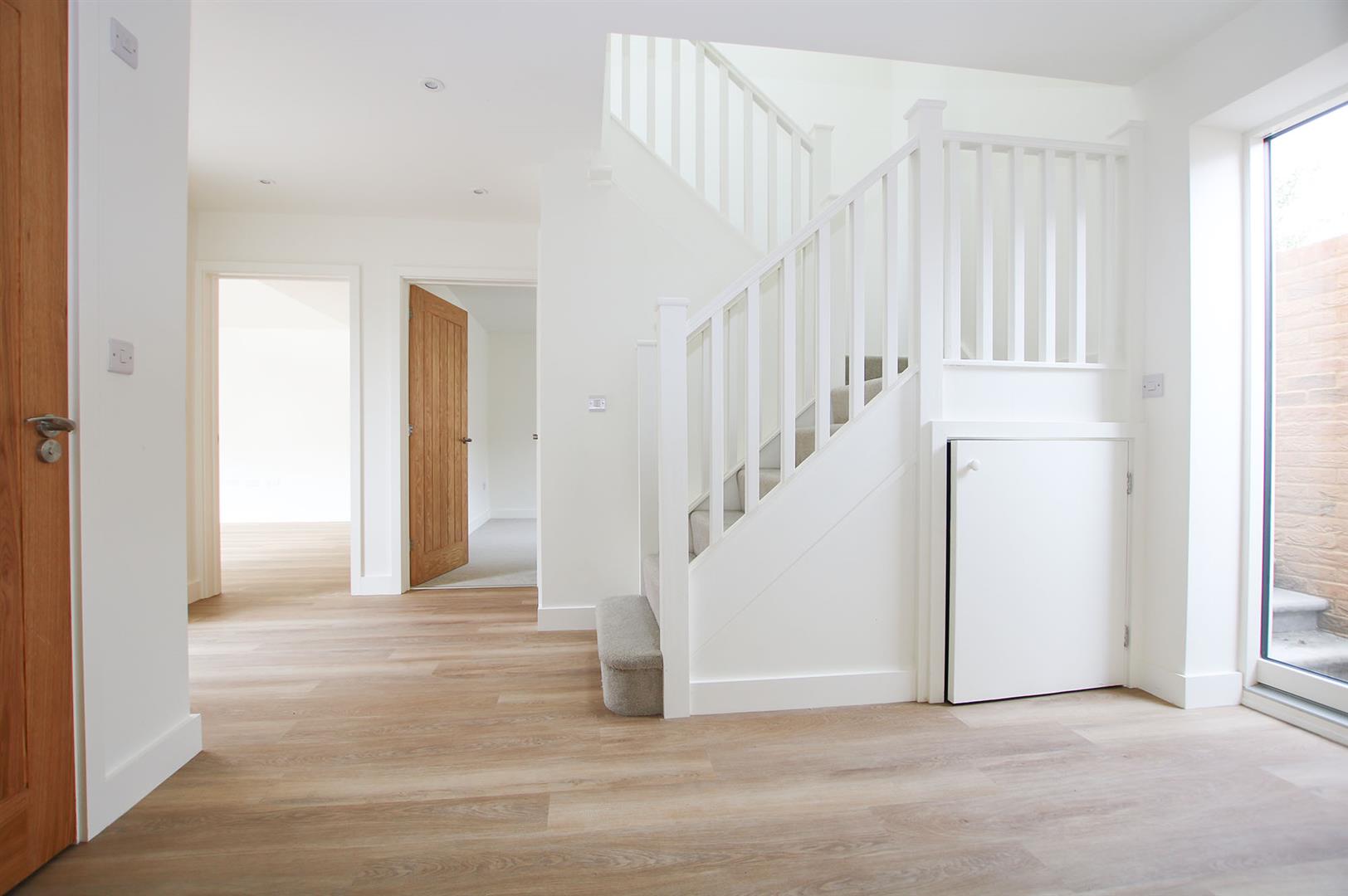 With doors leading to the kitchen/living/dining room, two bedrooms, storage cupboard and cloakroom. Window to the rear aspect. Stairs leading to the landing.