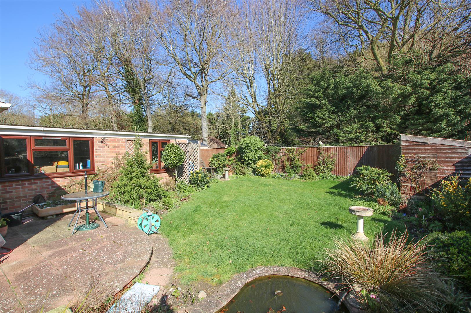 Mainly laid to lawn with established planted borders. Raised patio area with access to the conservatory and office. Ornamental pond. Timber shed. Pedestrian door to brick built shed. Access gate to the front driveway.