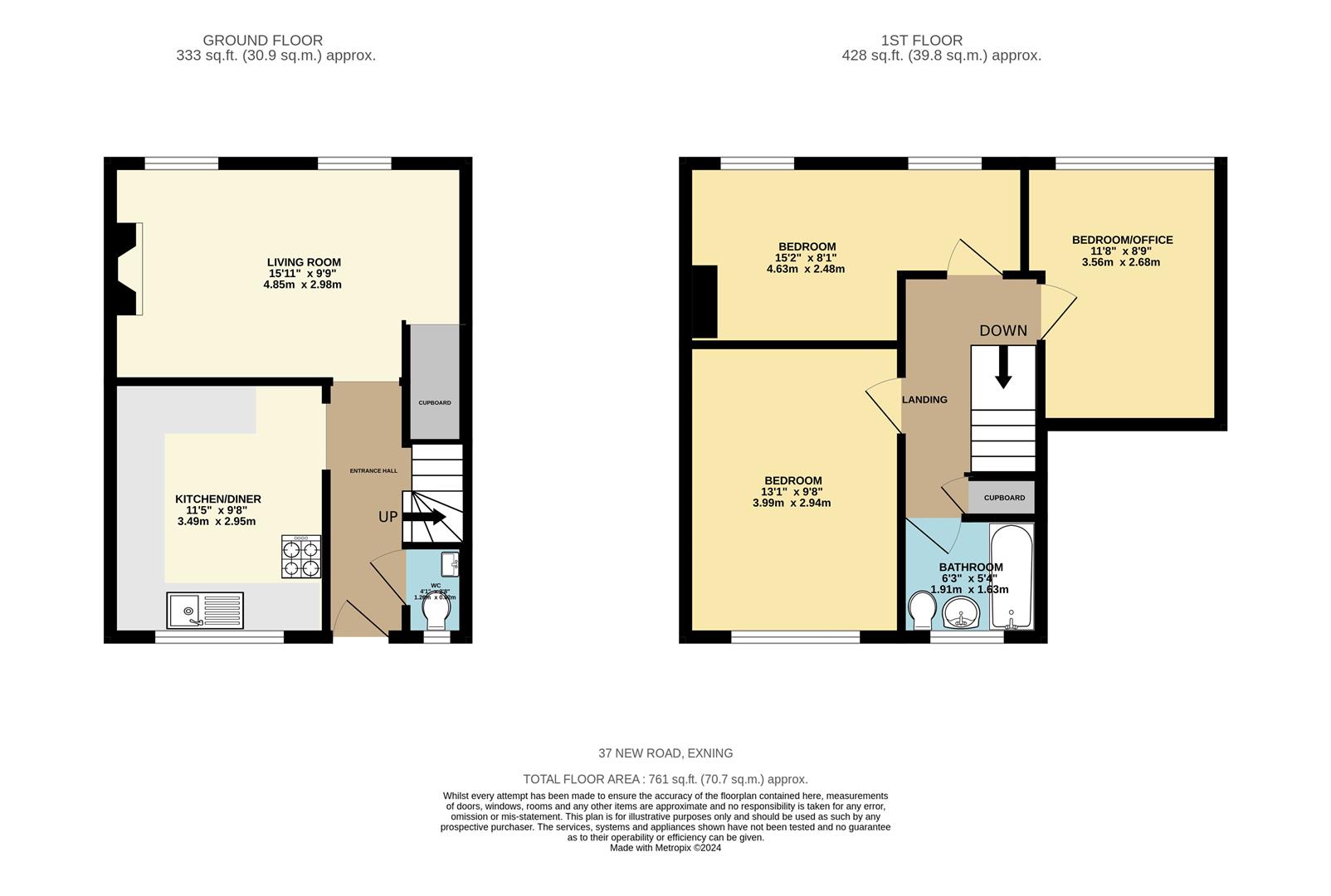 Double bedroom, currently used as an office. Large window overlooking front aspect. Radiator. Door to landing.