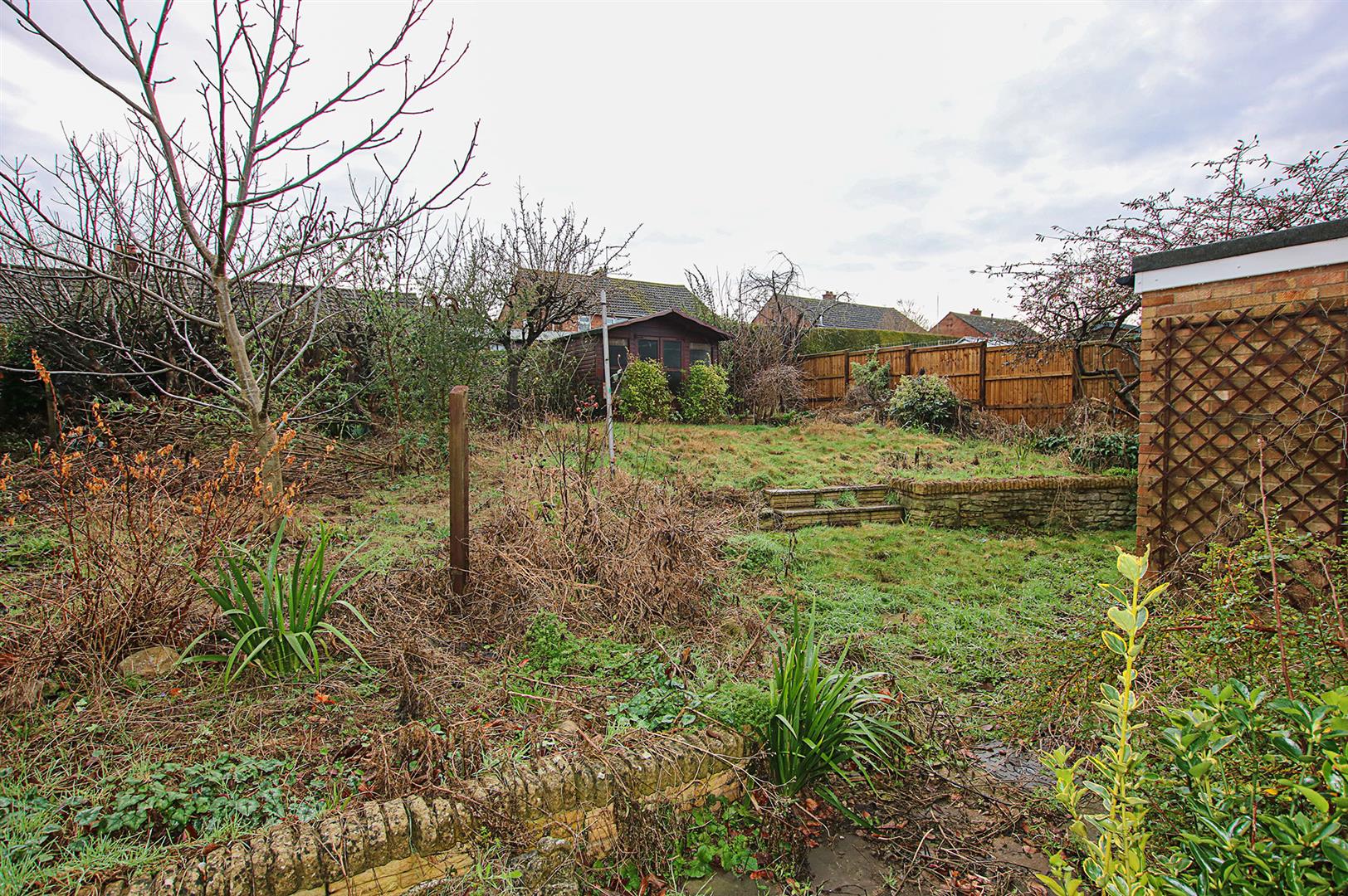 Fully enclosed rear garden with extensive patio seating area, large lawn area, timber built garden shed, variety of mature trees, shrubs and flowers.