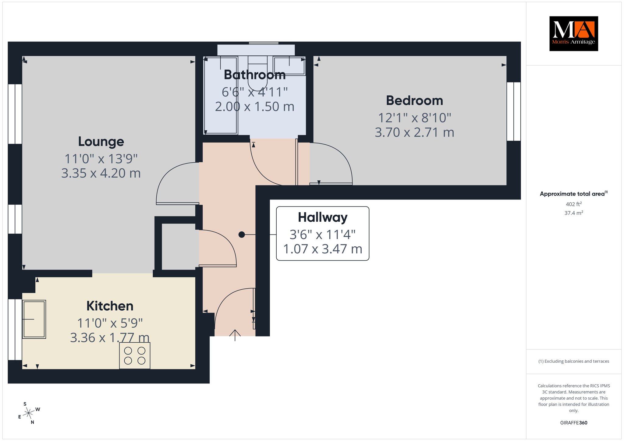 Kitchen 11’0” x 5’9” (3.36m x 1.77m)