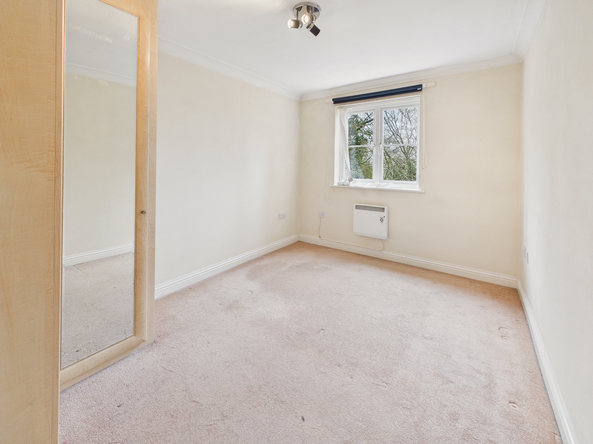 Fitted wardrobe unit, electric heater, uPVC double glazed window.