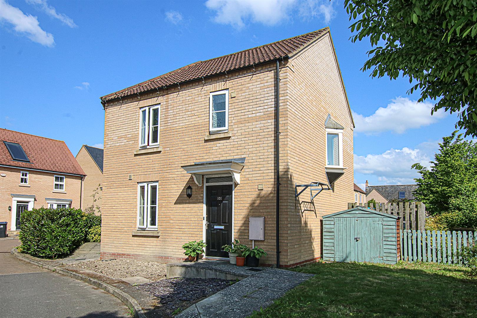 Pathway leading to front door with overhead storm porch. Front and side gardens. Side garden laid to lawn with views overlooking open countryside.